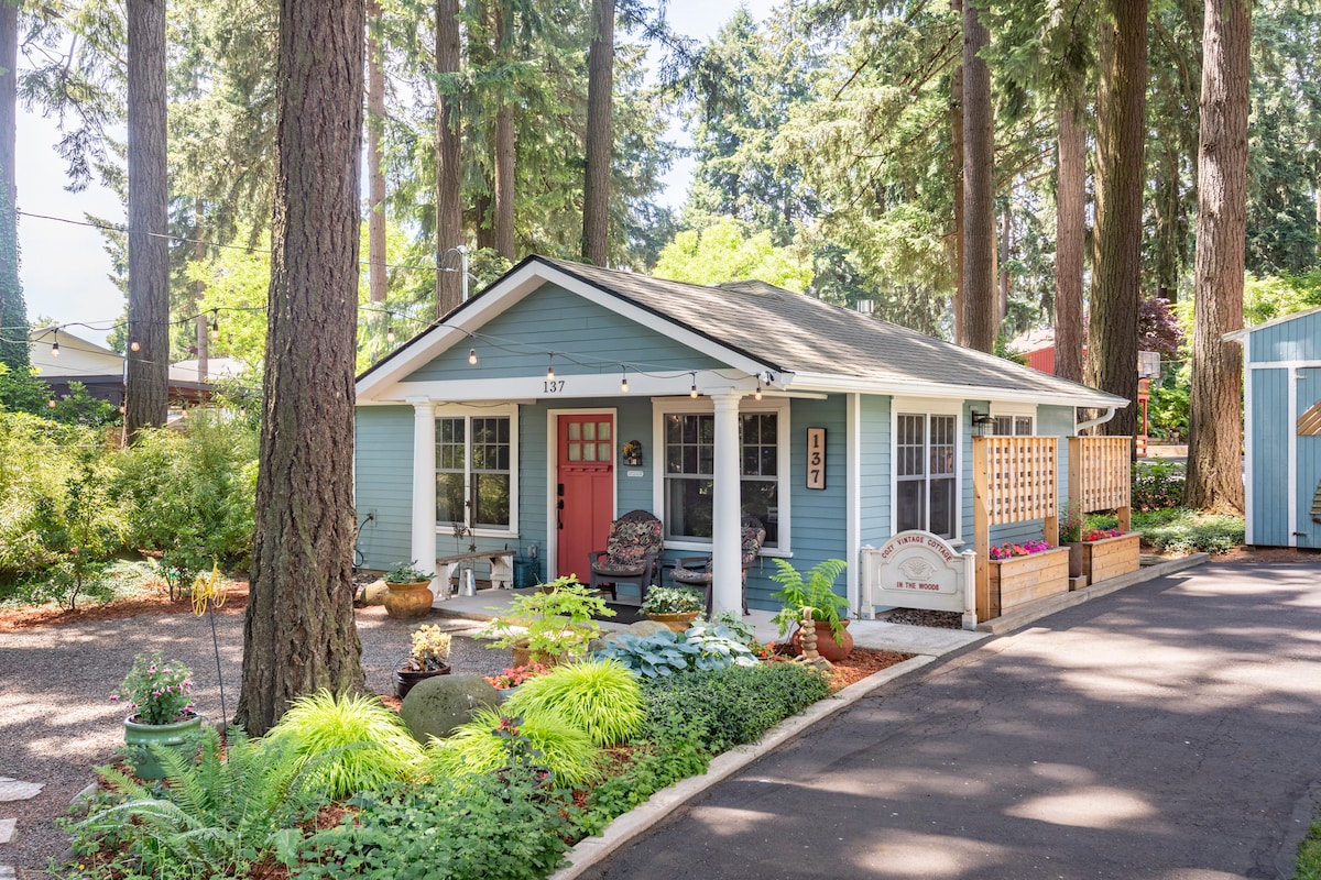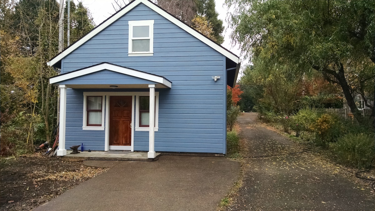 The studio cottage is located in an east Portland neighborhood bordering the city of Gresham. It is close to public transport (near a MAX light rail station), the airport and outdoor activities (the Columbia Gorge; Mt Hood) and is a 20-30 min drive to downtown. It's cozy (eclectic vintage style), a wooded 1-acre setting within the city limits, and has secure premises (electric gate). Our place is good for couples, solo adventurers, and business travelers. Please no young children.