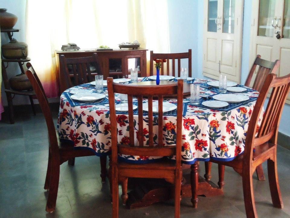 Guests accommodation at Bungalow 97 Ajmer is fully air conditioned 2 BHK (2 Bedroom, Hall & Kitchen) ground floor independent apartment. Your host stays in the front and you will be at the rear side of this beautiful heritage property. Garden and walkways are common areas. It is 5 minutes' drive from National highway 8 and 15 minutes' drive from Ajmer Railway station. We harvest clean electricity from the sun with the solar panels. Also minimize the use of plastic to reduce carbon footprint.