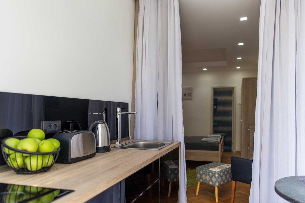 Welcome to our modern couple apartment with open air hot tub and stunning sea and city view. Misisuone apartments are located in a Mediterranean Villa in a peaceful neighbourhood, only one kilometre away from the nearest Slovenska Beach and 300 meters away from several good restarants,grocery stores and shops. We provide clean and comfortable apartments with free private parking and wifi. Hospitality of our staff will make you enjoy your stay in our nicely decorated and well equipped apartments.