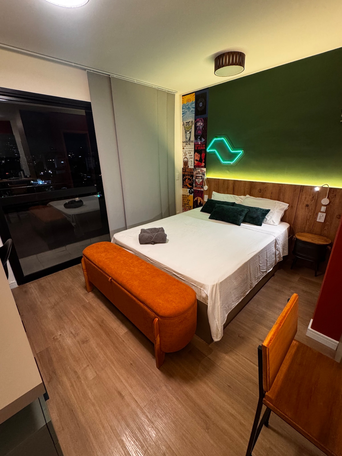 Se você gosta de luz natural, este estúdio na Vila Madalena é o lugar perfeito. Localizado no primeiro andar, em uma rua tranquila, a poucos passos de um lindo parque e de todos os bares, restaurantes, galerias de arte e música ao vivo que a Vila Madalena tem a oferecer. O estúdio possui cama de casal, armário, área de trabalho, TV de 43", Kitchenette, AC, e água quente no banheiro. O complexo de apartamentos possui piscina infinita, lavanderia, fogueira, recepção 24 horas e área comum.