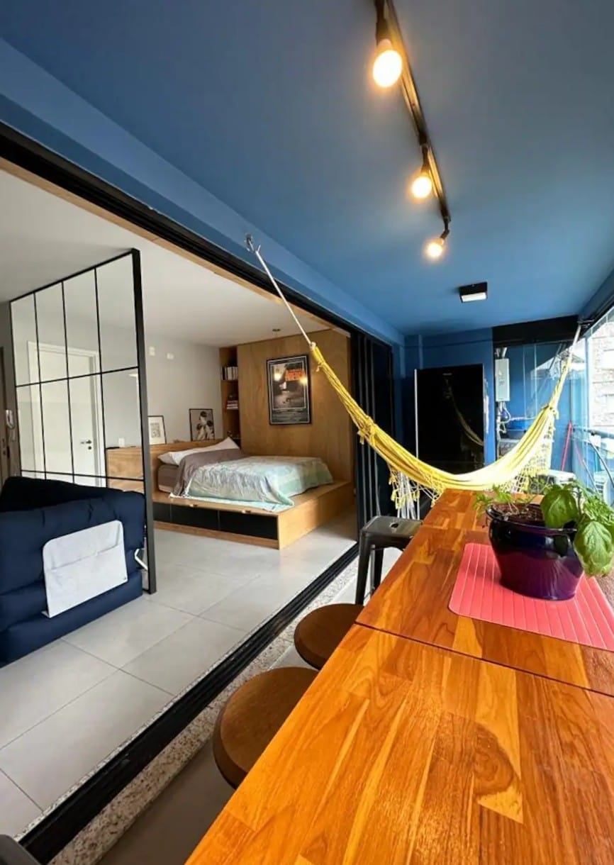 Open the door and step inside… "Uh uh, que beleza" in the heart of the concrete jungle. The greenery and cozy atmosphere reveal the Brazilian rhythm of this retreat. Every corner invites you to feel, dream, and be inspired by the sounds of Brazilian classics on vinyl. This is your place, for work or to experience São Paulo, because there is love in SP. The house pulses with life, with the freshness of plants, the poetry of books, and the gentle rhythm of bossa that accompanies every moment.