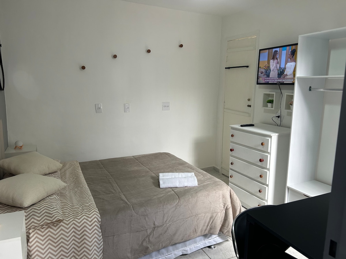 The small apartment is located in a small complex separated from the main building,next to Higienópolis Mall. The burgh is one of the most charming in São Paulo. Close to the subway, Mackenzie University, Italian Institute of Culture, FAAP among others. The charming apartment has a bedroom, bathroom and laundry. Ideal for those who want to spend a few days in São Paulo and don't want to spend a lot without giving up the comfort and safety. Is necessary to climb a short flight of stairs.