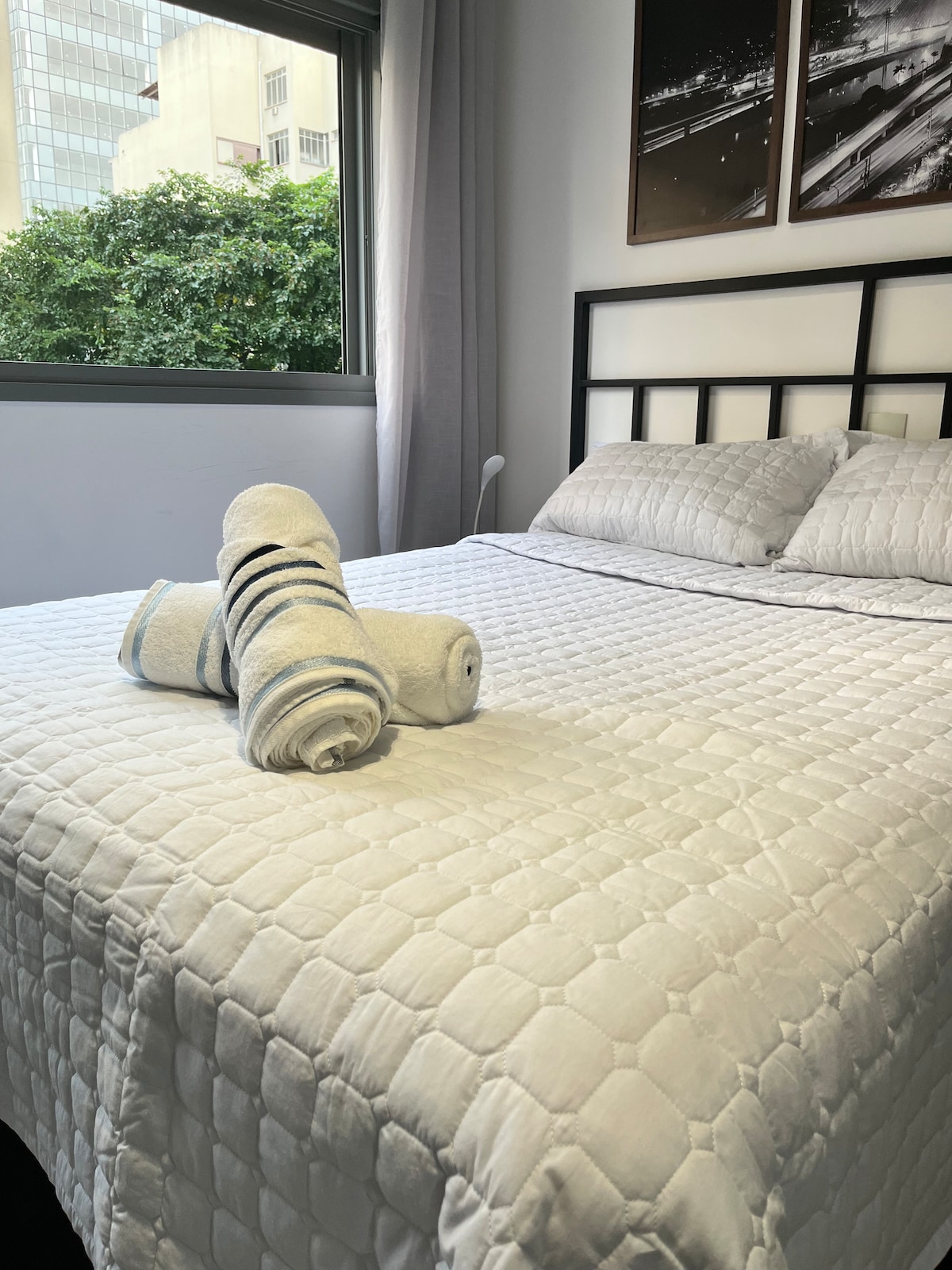 Aproveite este flat particular incrível dentro do Hotel Quality Suítes Oscar Freire: - Roupas de cama alto padrão; - Cama Queen; - Apoio de cozinha (sem fogão); - Wifi; - TV 32’’ com canais a cabo (sem streamings) - Amenities de boas vindas (variam com a duração da estadia); - Shampoo e condicionador, sabonete para mãos e corpo, papel higiênico; - Secador de cabelo; - Ferro de Passar; - Kit costura; - Adaptadores de tomada; - Ar central.
