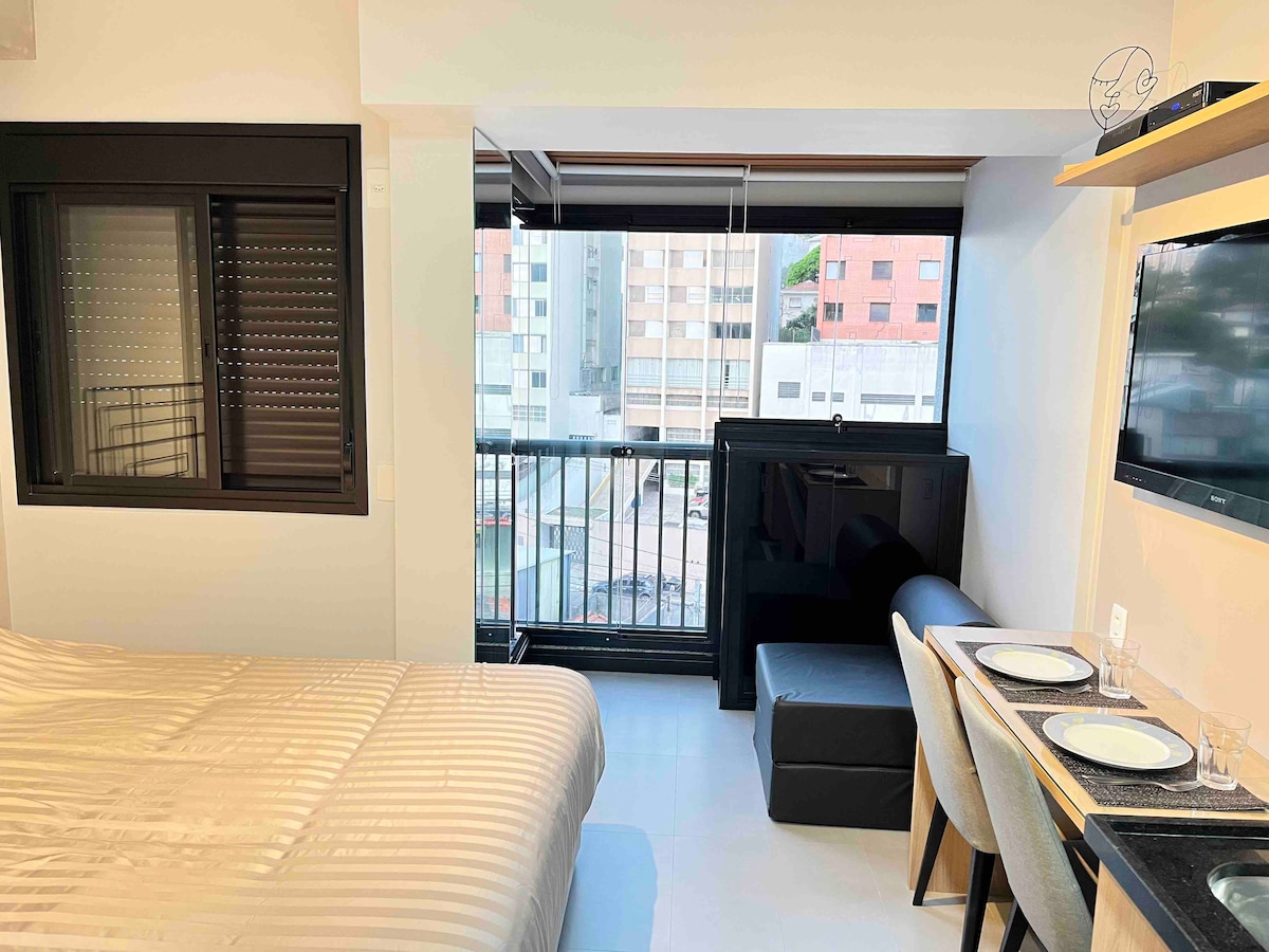 阳光单间公寓@ Vila Madalena,带空调和游泳池
