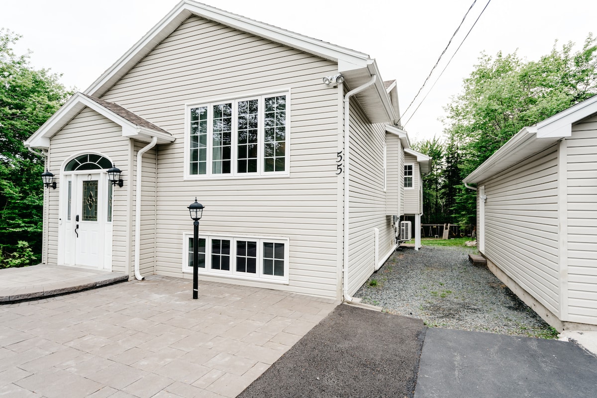 Enjoy a relaxed, comfortable and quiet stay at this great place with lots of room. Bright and spacious basement unit with 2 rooms (1 queen bed in each room) and one full bathroom with spacious living area with a dining nook and a wet bar (No KITCHEN). Only 20 mins from downtown Halifax. Air conditioned, heated floors for your comfort. Private entrance with contactless check-in with entry code provided at check in) Entry is through the backyard with few deck steps and a brightly lit pathway.