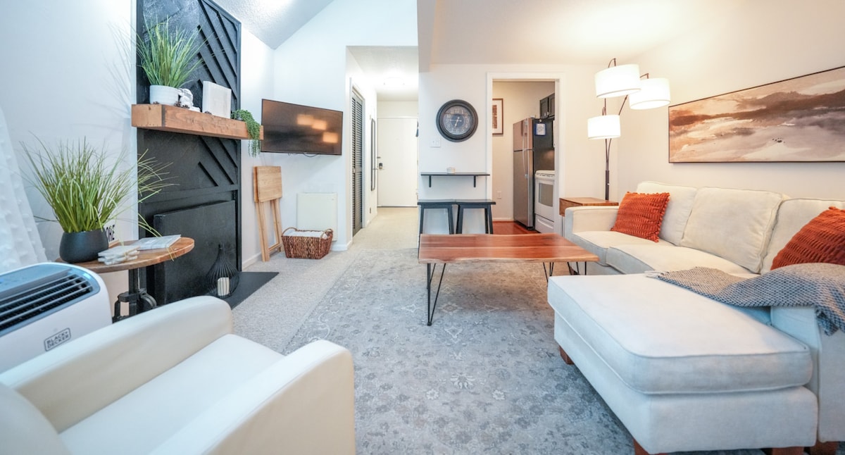 Experience this elegant & cozy condo.Offering a relaxing stay with a loft that sleeps 4 comfortably.Whether it's a day on the slopes, the golf course, or hiking relax and unwind in a peaceful and modern condo setting.Complete with WiFi, fireplace, massage chair, SmartTV, futon,full kitchen, toiletries and more.Common areas includes indoor/outdoor pool, hot tub, sauna, fitness, and tennis.Enjoy the Clubhouse Bar & Grill that is located near the condo for any snacks or delicious meals.Trivia night