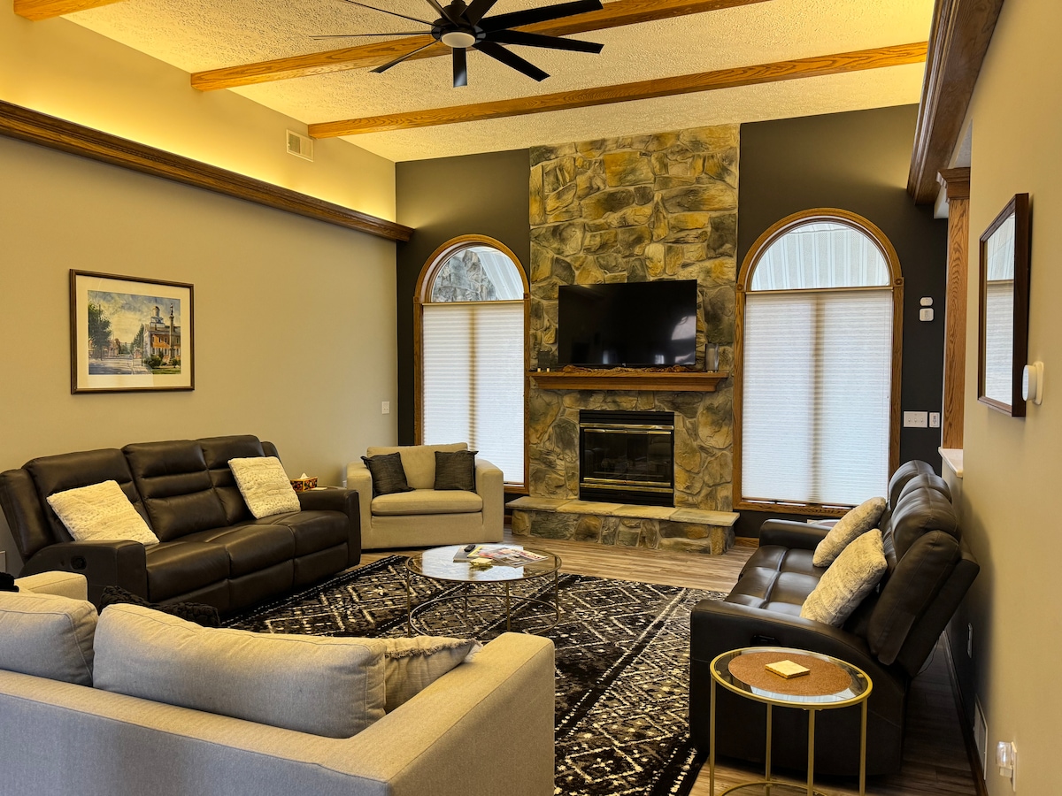 Get away from it all and relax in this recently updated 2-story countryside home. Just a short drive from Historic Downtown Bedford’s shops and restaurants, you will find a scenic country road that leads you to this peaceful retreat. Whether you sit and watch the sunset from the front porch, curl up with a book on the covered swing or sit around the fire pit while listening to the Whispering Pines, you’ll love the tranquil surroundings this property has to offer. Perfect for larger groups!