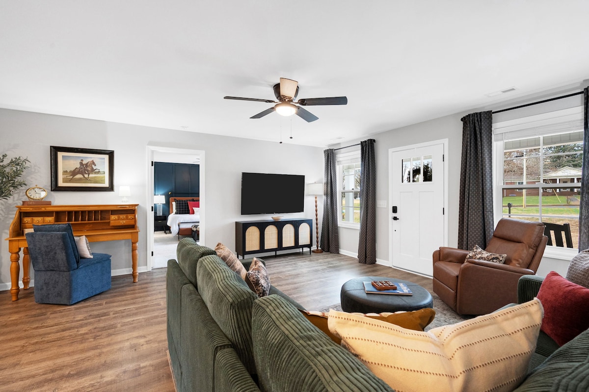 Welcome to your cozy Shelbyville getaway! Just 1/4 mile from the Horse Show Grounds and Cooper Steel Arena, this quiet retreat is close to downtown, shops, and restaurants. Enjoy high-speed Wi-Fi, a smart TV, AC/heat, and free parking. The apartment offers two comfy bedrooms — one with a queen bed and one with a full twin — ideal for couples, families, or business travelers. Thoughtfully designed for comfort, relaxation, and a pleasant stay.