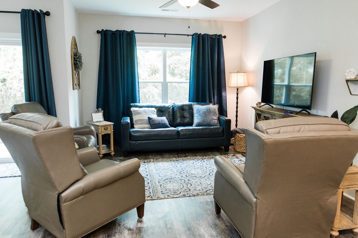 Otterview has one of the most incredible views in the state, huge deck, and pond. The house is open format with 3 bedrooms, a top of the line kitchen, cozy living room, and extraordinary great room. Look out at the Peaks of Otter, enjoy incredible sunrises and sunsets. You are welcome to grill out on the Blackstone, enjoy the firepit, and relax on the dock. There is two miles of trails on the 37 acre property with their own trail signs and map.