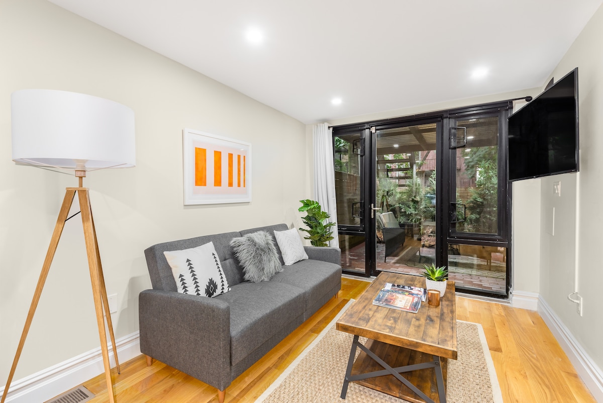 Welcome to your lovely retreat in Brooklyn! - Sparkling clean 1.5 bedroom apartment with a comfy queen bed and semi-private full bed. - Fastest Internet for work or streaming. - Fully equipped kitchen, cozy living room, and private bathroom. - Enjoy easy access to Brooklyn neighborhoods and a short train ride to Manhattan. - Close to parks, restaurants, and public transport options. - Automated check-in for your convenience with 100% privacy.
