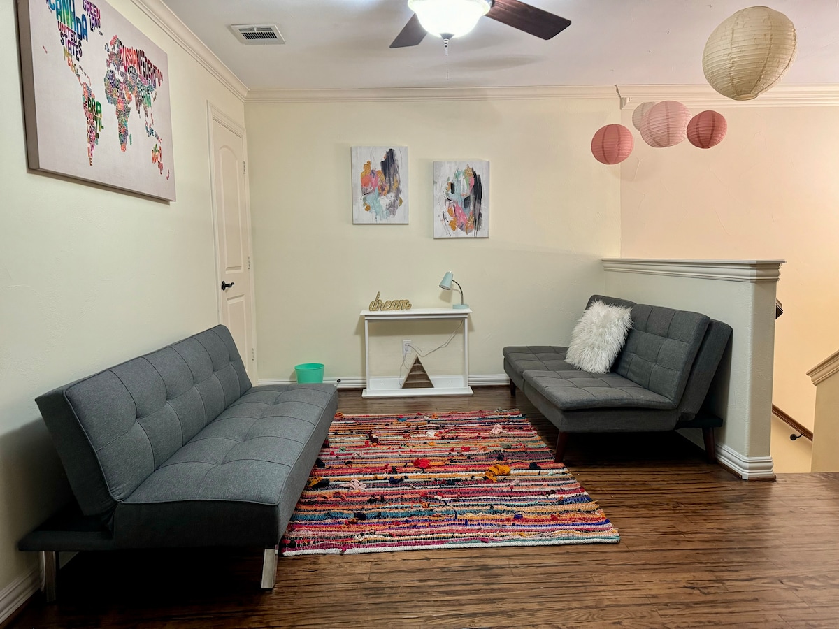 "THIS IS WHERE LOVE LIVES" is only 7 min from DFW Airport, in the center of everything in DFW! Its' design was inspired by the Bible, Bachelorettes & Besties! It's ideal for girly getaways & "spouse besties" – the perfect & peaceful retreat for closeness & intimacy with each other & Jesus. It features 3BR & 2BA, a saltwater pool, a resort-style backyard, an open-air & covered patio, photo-ops & more. If your dates are booked, check out our sister properties "Look Up!" & "Grounded in Gratitude."