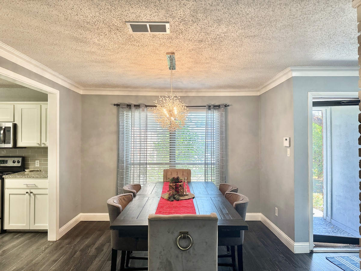☆ We are 2-year Superhosts and always striving for 5-star service! ☆ SINGLE STORY - 1529 Sq Ft Modern Home ☆ Cul-de-Sac home ☆ Easy Self Check-in w/ Keypad ☆ Private, Fully Fenced Backyard ☆ Private Driveway ☆ Fast Wifi (495 Mpbs) ☆ High Ceilings ☆ 50” HDTV Smart TV/ Netflix, Hulu, Prime Video, Disney+ and more (just log in) ☆ 3 Queen Size Bed/2 Full Bathrooms ☆ Custom Guidebook w/ Local Recommendations and Tips ☆ Clear Host Communication ☆ Sparkling Clean Home