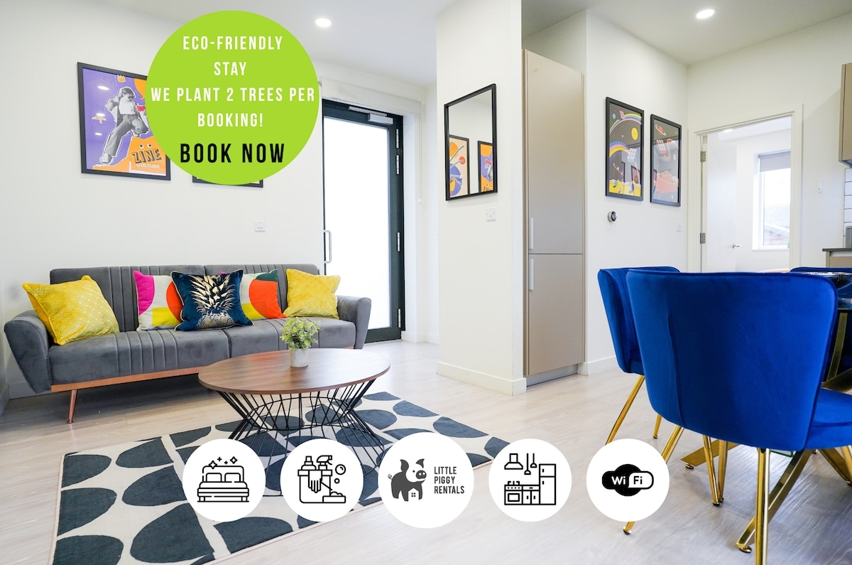 Welcome to your home in Central Bedfordshire! This modern 2-bedroom flat near Luton Airport is designed to suit every type of traveller — whether you need a convenient overnight stay, a week with family, or a comfortable base for a 3–4 month work contract or relocation. Enjoy fast WiFi, Netflix, Amazon Prime, and a PlayStation 5 for downtime. A private balcony, full kitchen, and blackout curtains ensure you feel at home — whether you stay for a few nights or a few months.