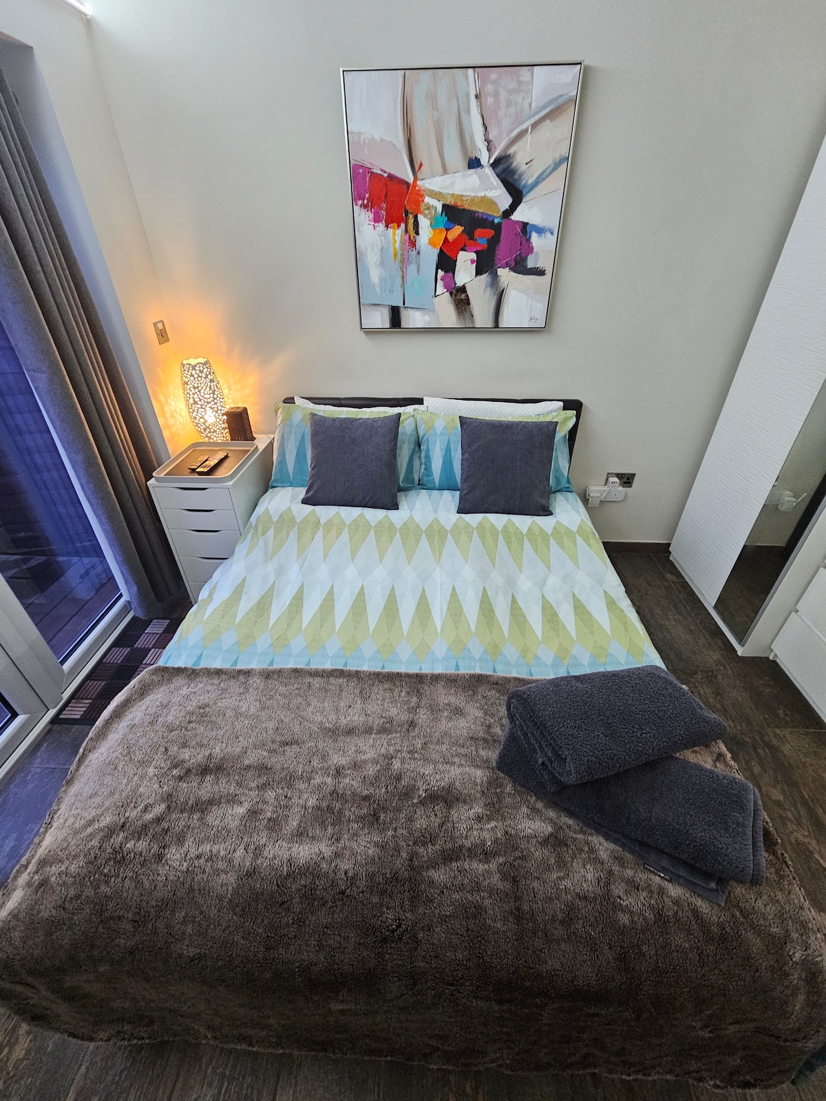 A fully refurbished self contained loft apartment We can offer either super king or twin beds dependant upon your requirements (Please confirm upon booking) Private staircase, decked balcony, open plan living, aircon/heating, TV, armchairs & breakfast bar/table. Kitchen includes combi oven, ceramic hob and fridge . Bedroom offers aircon/heating, TV and double glazed window looking onto open views. Modern en suite bathroom includes a spacious walk in shower fresh towels & basic toiletries.