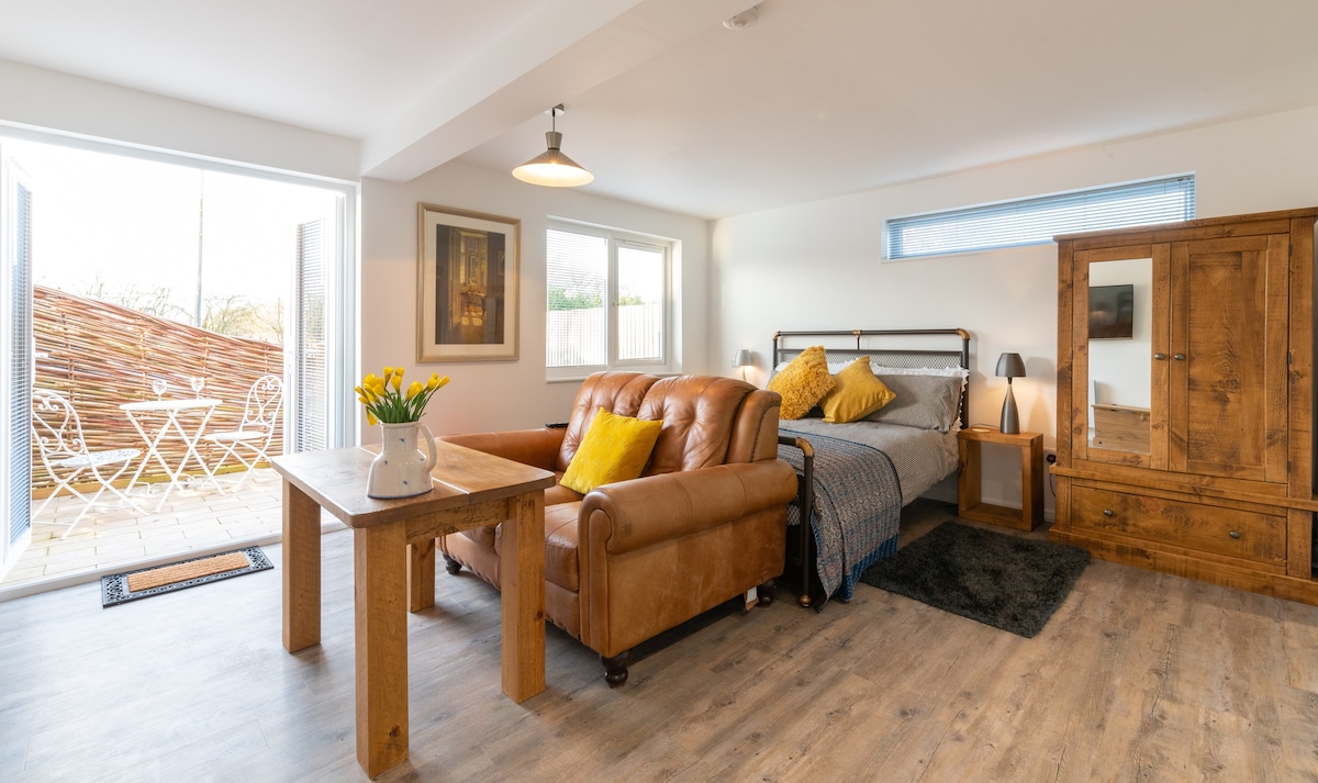 One of our 2 boutique, self-contained rooms set in the grounds of a Grade II listed cottage in the heart of Ashdon village, 10 mins away from Saffron Walden and 30 mins from Cambridge. Surrounded by beautiful countryside with lovely local walks & places of interest. A warm welcome at the village pub. We provide a continental breakfast with homemade sourdough, yoghurt and fruit compote. See airbnb.co.uk/h/appletreeview for a slightly larger room with easy chairs. Option to configure as twin.