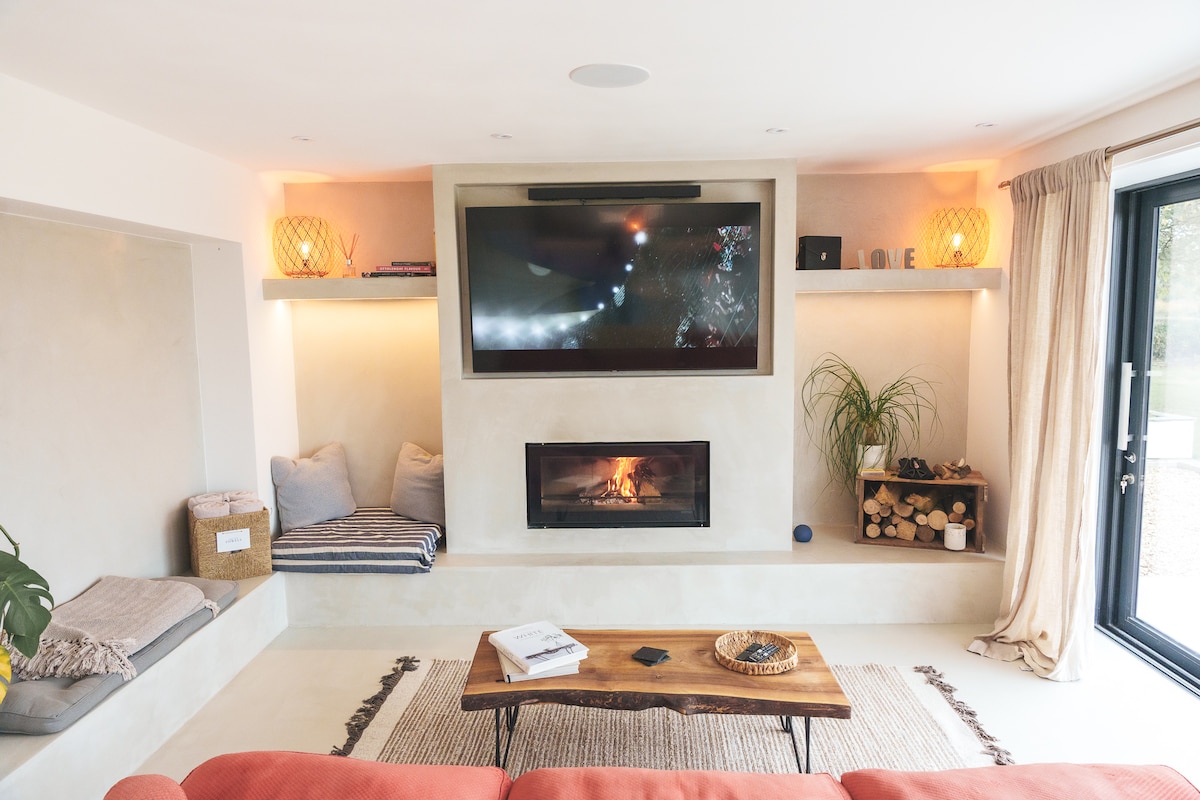 The Pool House is a contemporary spacious, private, hideaway, perfect for a romantic getaway or just a stay to explore the surrounding area. Styled with a shabby chic vibe. THE SPACE IS ONLY SUITABLE FOR 2 ADULTS & 2 CHILDREN AGE 12 AND UNDER A HOT TUB SPA AVAILABLE ALL YEAR ROUND. If I have late availability, I will reduce the rate a week before. THE POOL WILL REOPEN ON THE 1st OF MAY. THE POOL WILL BE HEATED IN JUNE, JULY & AUGUST, IT WILL NOT BE HEATED IN MAY. IT WILL CLOSE 8/09/25