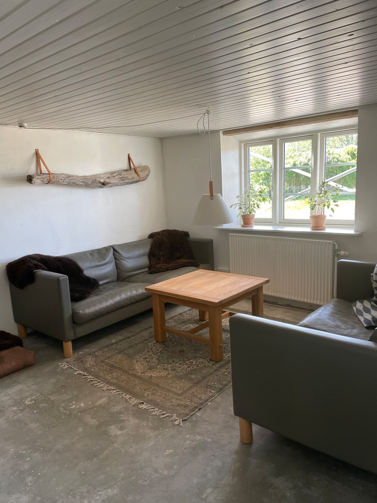 Lille hyggeligt ,rustikt hus i direkte forbindelse med drivhus. Huset er anneks til vores stråtækte bolig der er beliggende i sydvendt skovbryn Omgivet af stor have. I huset dobbeltseng, sofa og sofabord og stige til lille hems. Huset opvarmes med brændeovn ,brænde inkl .Enkle køkkenfaciliteter, men muligt at tilberede et varmt måltid. Toilet og bad i hovedhuset, direkte ved indgang fra gæstehuset. Toilet og bad adskilt ,deles med værtsparret. Huset ligger smukt, nær fjord ,hav ,Nationalpark Thy