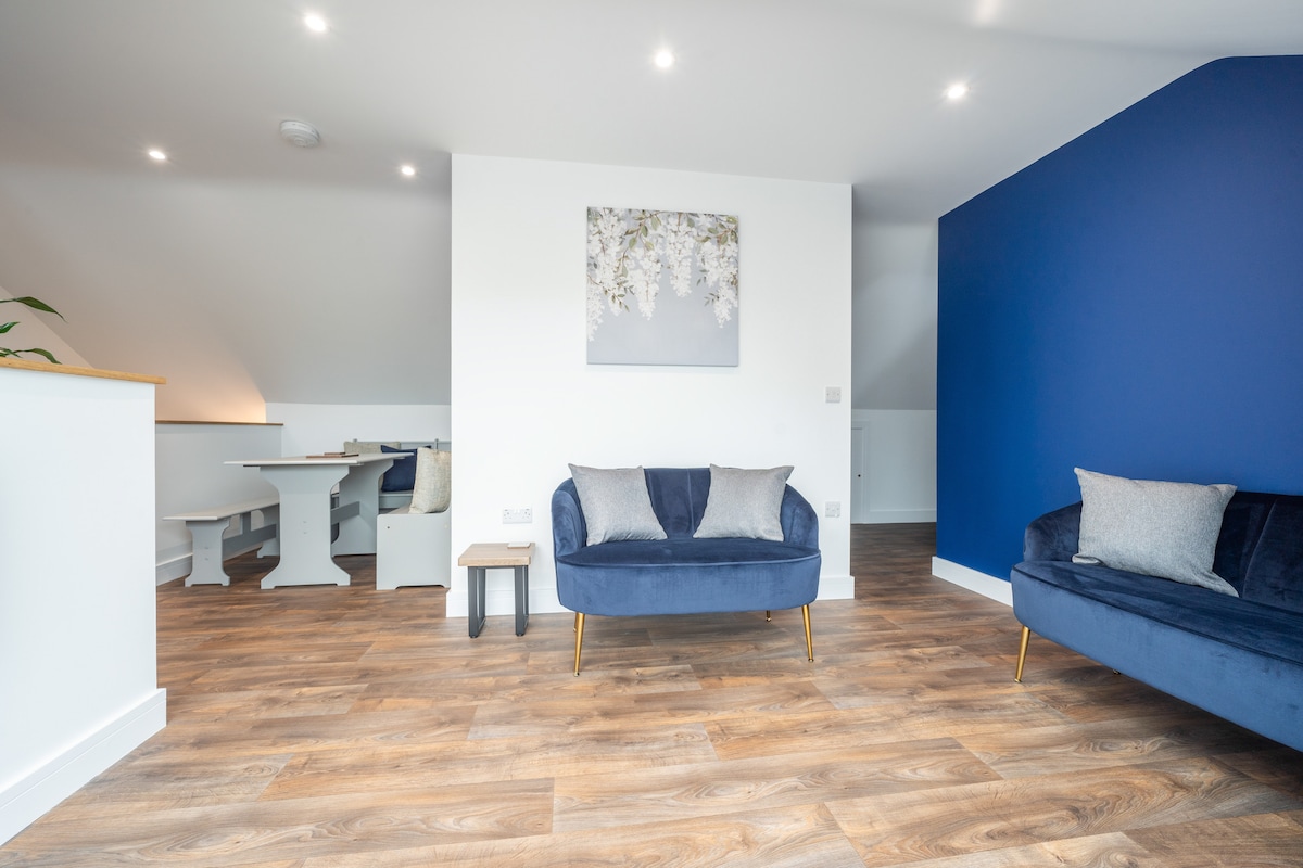 This beyond the average bespoke 2020 build is ultimately pleasing to the eye, with it’s curvaceous smoothed oak rail staircase, handsome pillars and waxy satin cedar beams which embrace this appealing handcrafted lodge. An open plan living area leads onto 2 bedrooms with beautiful en-suites. Sitting in a field amongst the vivid greens of the Shropshire hills on an expanse of decking where you can open up the bifold doors and bring the outside in and enjoy the deliciously warm hot tub.