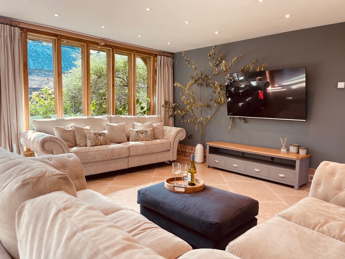 The Orchard Barn at Old Court Farm. Our country hideaway has been lovingly brought to life from its humble beginnings as a Old cider barn. Designed and built here on the farm, this modern conversion brings a luxurious ‘interior feel’ surrounded by never-ending oak beams with views over looking the apple orchards. With 70 acres of near by orchards for you and your pets to ‘roam freely’ it’s a true feeling of the very beautiful English countryside.