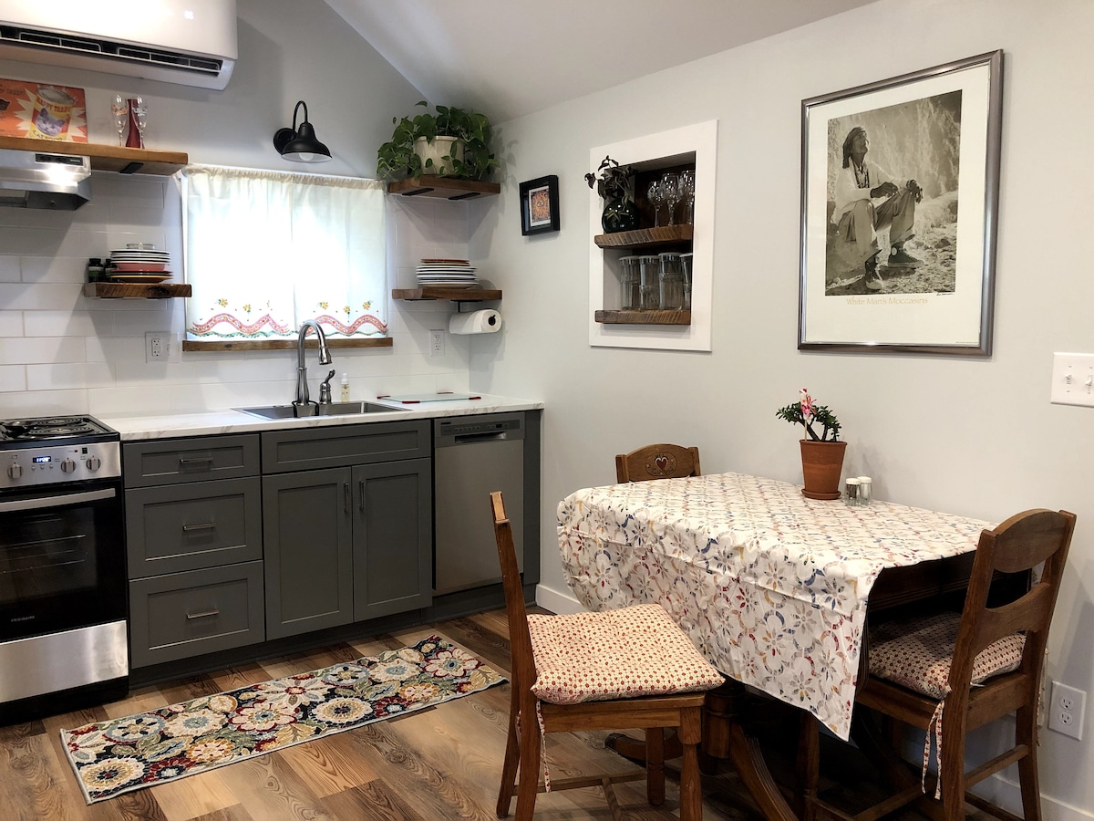 On Howard’s Knob mountain, peaceful, inspiring and creative, our newly remodeled, cozy cottage has everything you'll need for a rejuvenating mountain vacation. 624 sq. ft., 2 bedrooms. Kitchen. Deck. Private parking for 3-4 cars. Less than a mile to shopping and dining on King Street in downtown Boone and ASU campus. 1 mile from Howard’s Knob peak & County Park. Wi-fi and TV in each bedroom and the living room. Also a DVD player, a CD player, a record player - lots to see and hear!