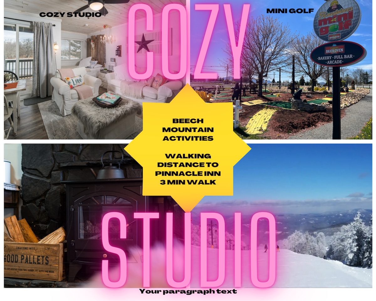 FIRST FLOOR cozy studio located at the Pinnacle Inn. Incredible location just steps away from an indoor pool, hot tub, sauna and much more! LESS THAN A MILE FROM THE OVERLOOK BARN and Beech Mountain Ski Resort. In-unit Laundry/WIFI/Queen Bed ** Tennis and Pickleball courts being resurfaced ** COMMUNITY AMENITIES: *ON-SITE SKI RENTALS* Heated indoor pool, hot tub, sauna, gym, table tennis, outdoor tennis court, pickleball, mini golf, shuffleboard, disc golf, corn hole.