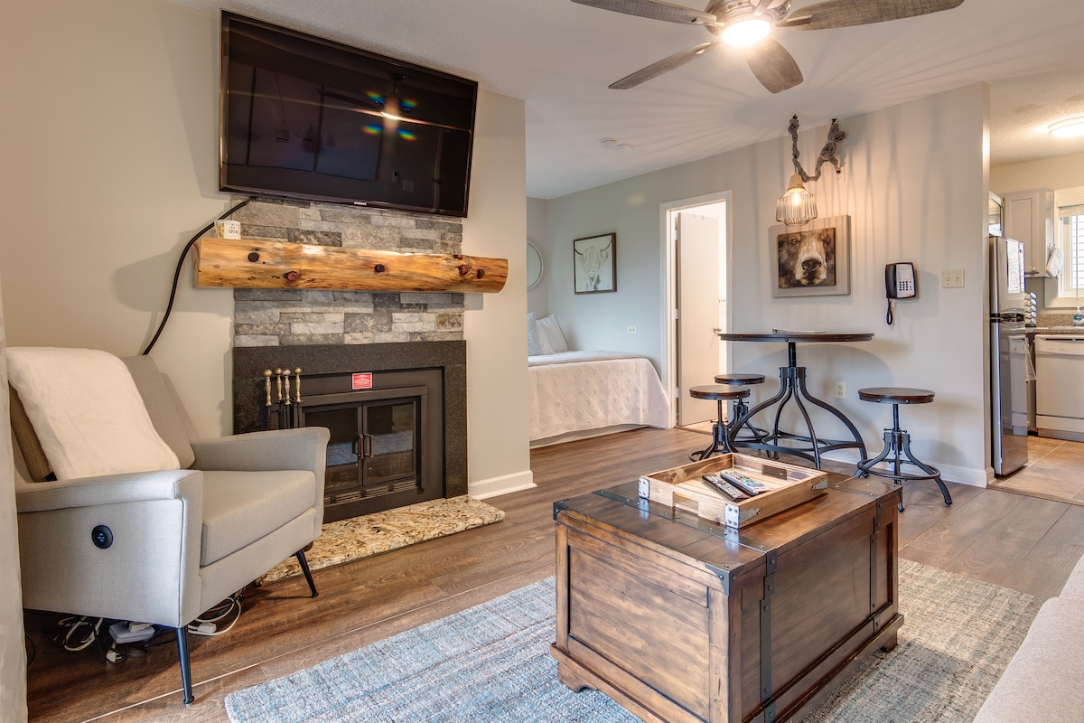 FIRST FLOOR cozy studio located at the Pinnacle Inn. Incredible location just steps away from an indoor pool, hot tub, sauna and much more! LESS THAN A MILE FROM THE OVERLOOK BARN and Beech Mountain Ski Resort. In-unit Laundry/WIFI/Queen Bed ** Tennis and Pickleball courts being resurfaced ** COMMUNITY AMENITIES: *ON-SITE SKI RENTALS* Heated indoor pool, hot tub, sauna, gym, table tennis, outdoor tennis court, pickleball, mini golf, shuffleboard, disc golf, corn hole.