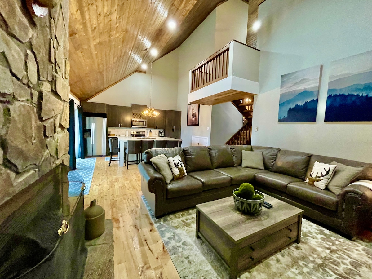 **New Listing** Escape to this charming Beech Mountain slope view chalet retreat with stunning views of the ski slopes. Just a short walk to the slopes, restaurants, and shops, it’s the perfect location for adventure and relaxation. Inside, enjoy cozy, themed bedrooms, vaulted wooden ceilings, and a stone gas fireplace. The spacious deck offers a dining table, hammock, and a seating area with gas fire table—ideal for unwinding after a day of skiing or exploring the area. A true mountain getaway!