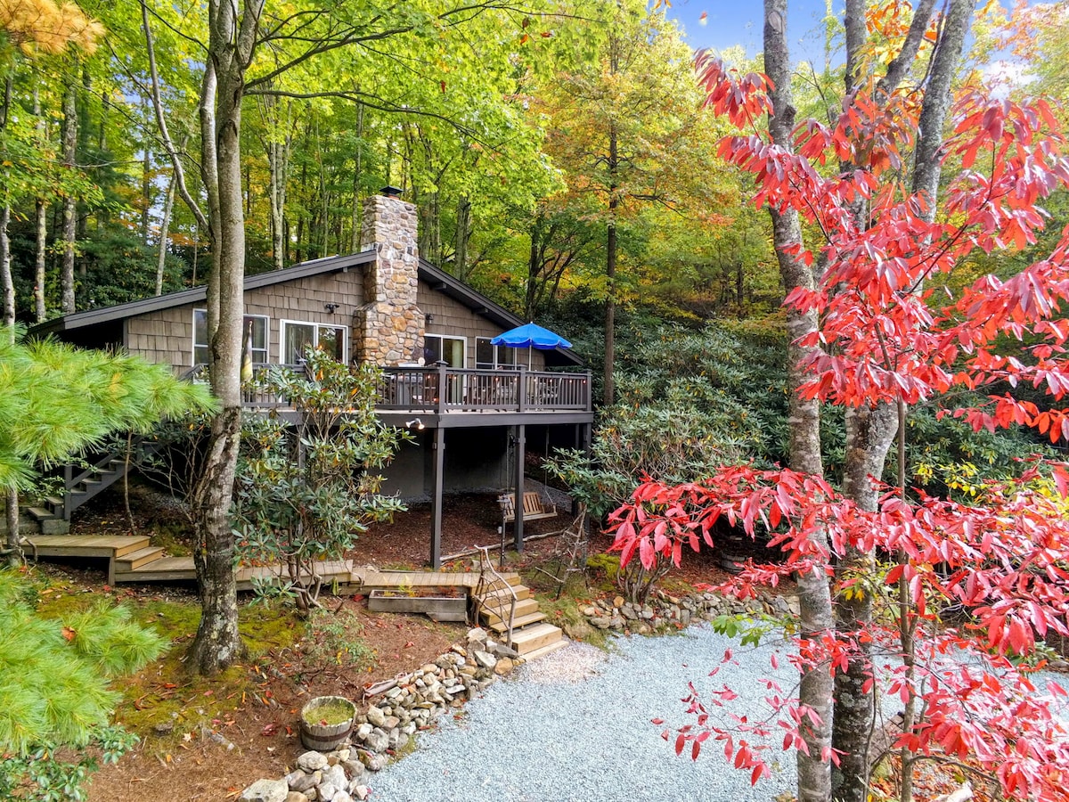 Gorgeously renovated! Stone gas fire place. New stainless steel appliances. New gas fireplace. Walk in shower. Long deck with comfortable outdoor furniture. Big Jacuzzi tub in master on suite. Open kitchen and living room looks out on large deck for privacy. Park 3 cars on flat parking area. 1 free bottle of wine * please note that this cabin is private with wooded views only, and across the street from Beech Mountain Club , convenient for concerts, brewery, mountain biking and skiing.