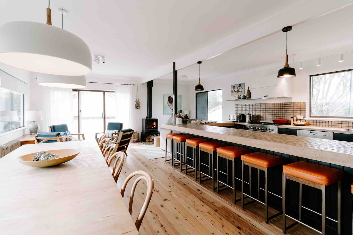 Just 100m walk to the beach, this stylish and private renovated beach house is everything you need for a relaxing getaway. This 2.5 bedroom house features open plan living and dining space, with high ceilings and fans, and separate sleeping quarters. The well equipped kitchen is a cooks dream. Two separate lounge areas provide separate spaces for adults and kids. Plenty of books and games to entertain the whole family. We welcome well behaved dogs and their responsible owners.