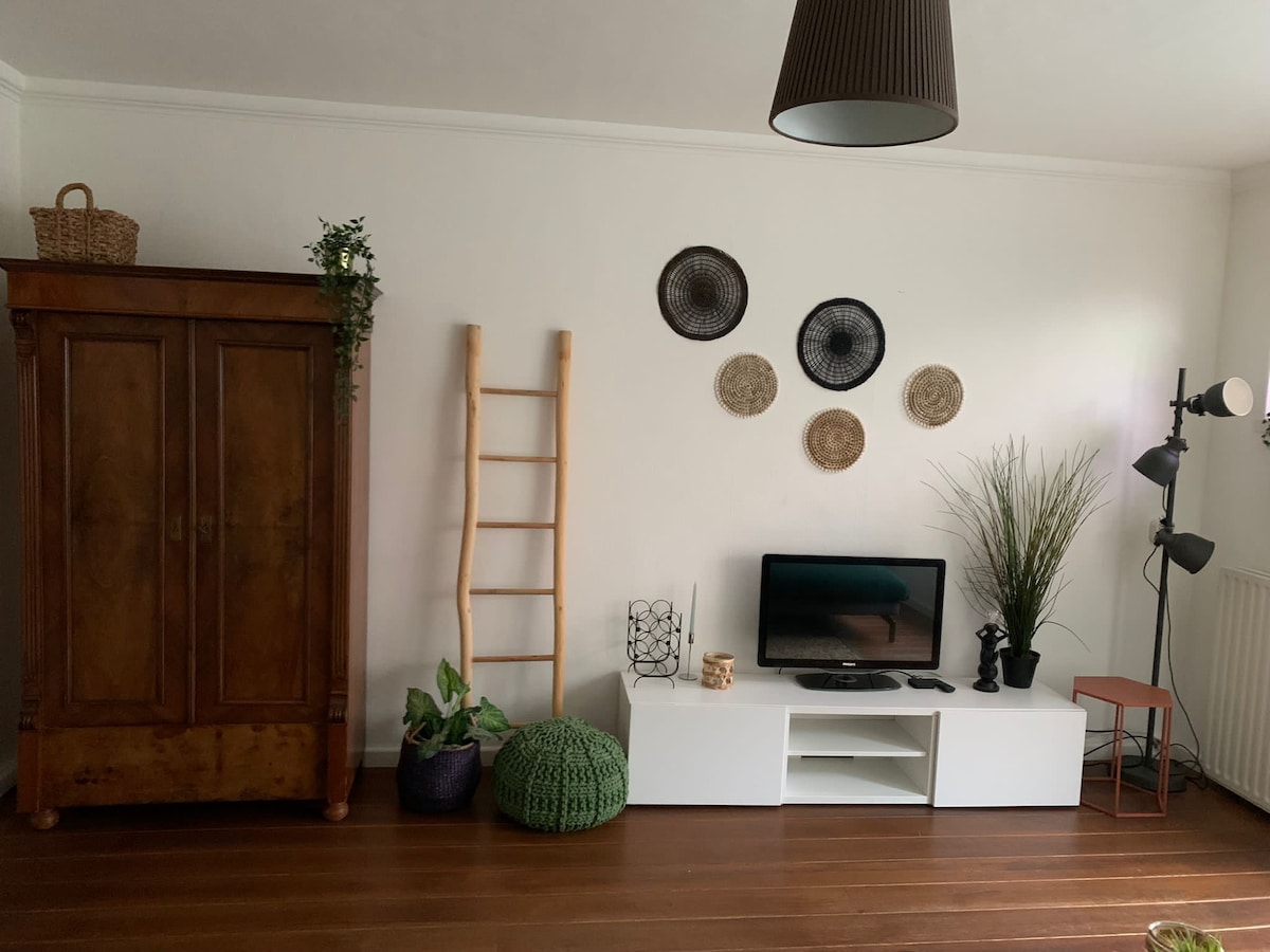 max. 1 guest ground-floor apartment with nice garden 1 bedrooms, bathroom, kitchen, basement quiet neighborhood near city park 350m. to bus 1 km. to train station, stop for all trains going north and south 20 km. from Maastricht/airport 1 km. to city center and supermarket AH Possibly I am at home myself too.