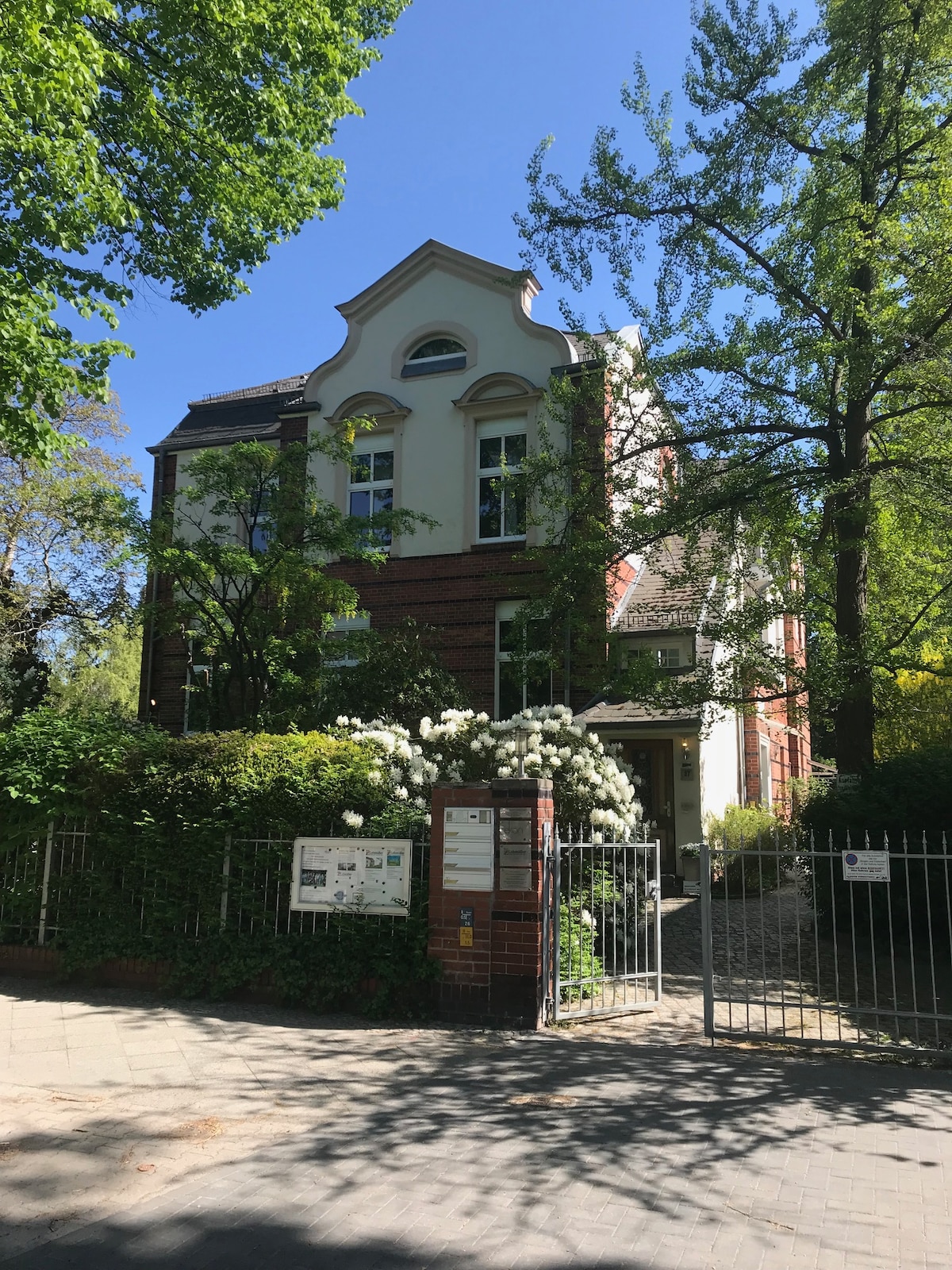 In the beautiful city of Potsdam, directly at the park Sanssouci and right across from Schloss' Charlottenhof you will find our villa built around 1850. The holiday apartment on the ground floor is spacious and family-friendly. Bed linen and towels are provided accordingly. Within walking distance you can reach the supermarket and a bakery or café for breakfast. Dogs are welcome here. We are looking forward to your interest!