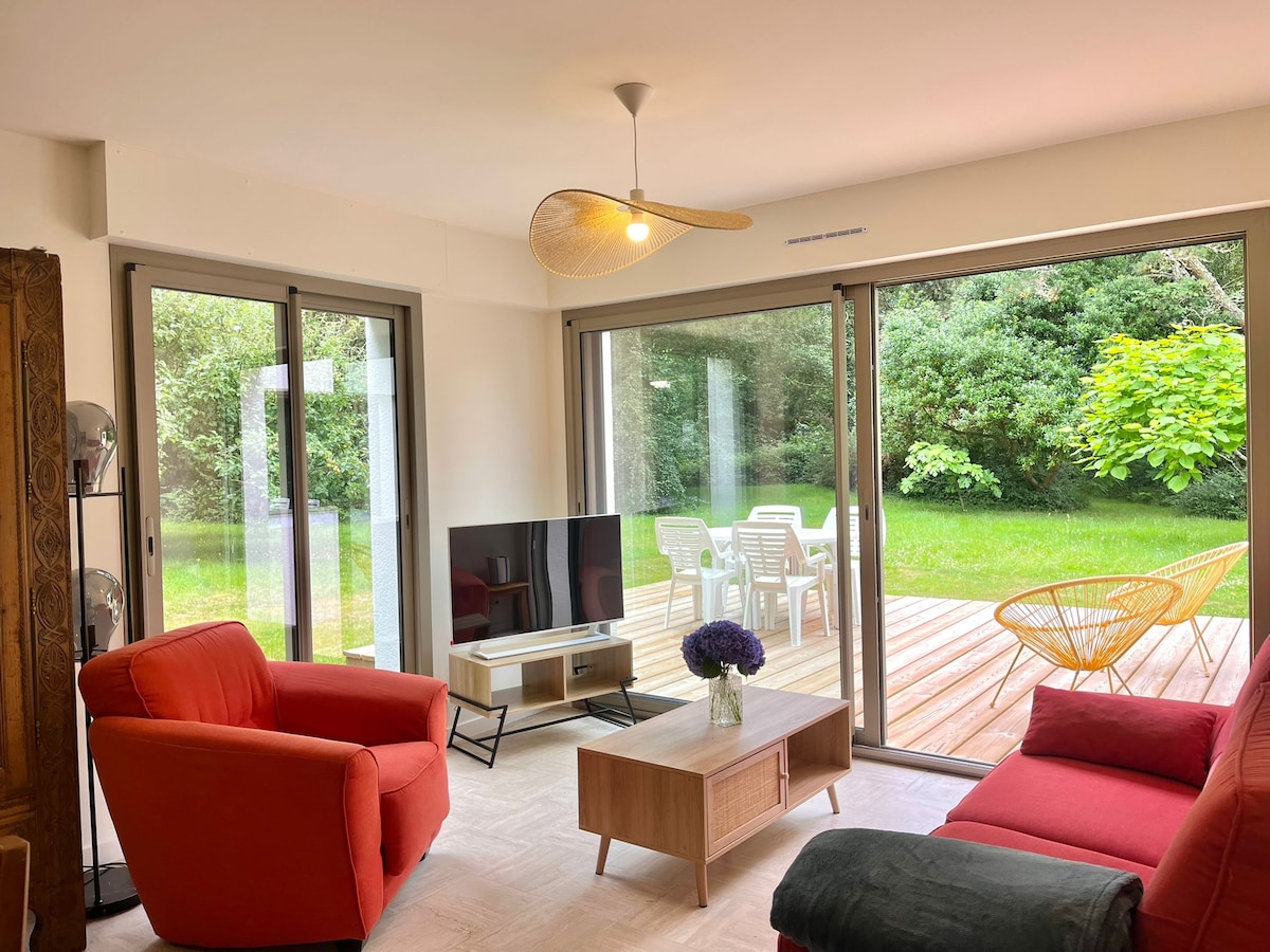 Villa élégante à 80m de la plage - Bourg à 500m - quartier résidentiel privé - jardin clos arboré. Ce logement affiche un style résolument unique et élégant grâce à ces volumes clairs aménagés avec goût, son jardin clos à 80 mètres de la plage de Kermyl à Beg-Meil. Calme et tranquillité en bord de mer...