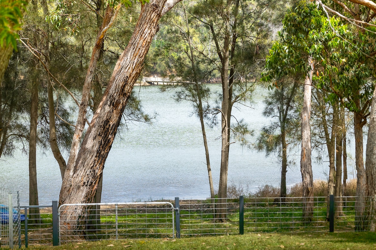 Find peace & tranquility in this sweet & stylish space with views of a lake, forest & farmland. Experience solitude & privacy with only a small distant cottage in sight. Swim in the river, see the stars at night, Roos at dusk & dawn and a few cows. It is off-grid with solar power and water must be carted in. For the hot days there is an air cooler ( no Aircon), it always cools down at night. No heater inside but it is never too cold in winter. Firewood provided. Cooking on bbq outside! 😊