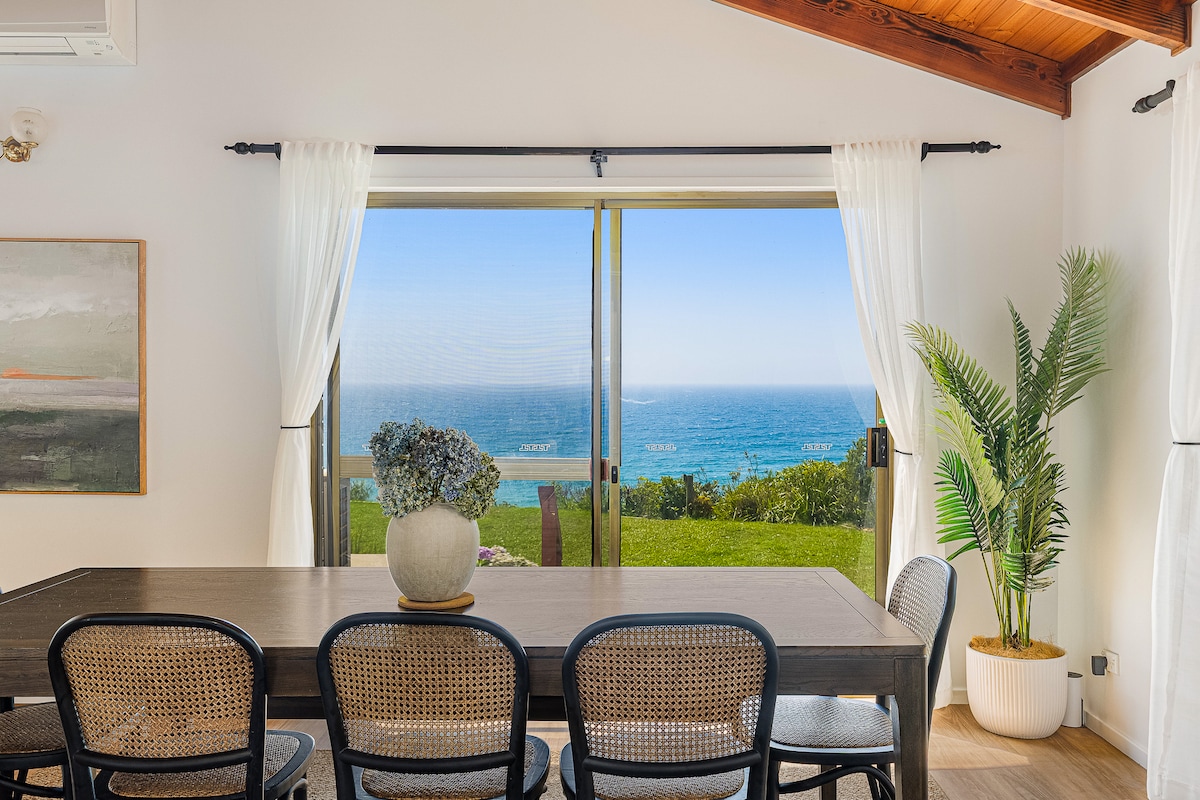 Spring, and the whales are heading south. Watch whales in the bay, dolphins and sea eagles from the sun drenched lounge room . 'Clifftop' is a special 1960's Retro house right above beautiful Tathra Beach with stunning views of the coast and ocean High cyprus pine ceilings, retro fittings, sunny aspect and shelter from prevailing winds give Clifftop its unique style leaving guests with lasting memories.. Clifftop is lovingly maintained by us (Chris and Bruce) to make your stay special.