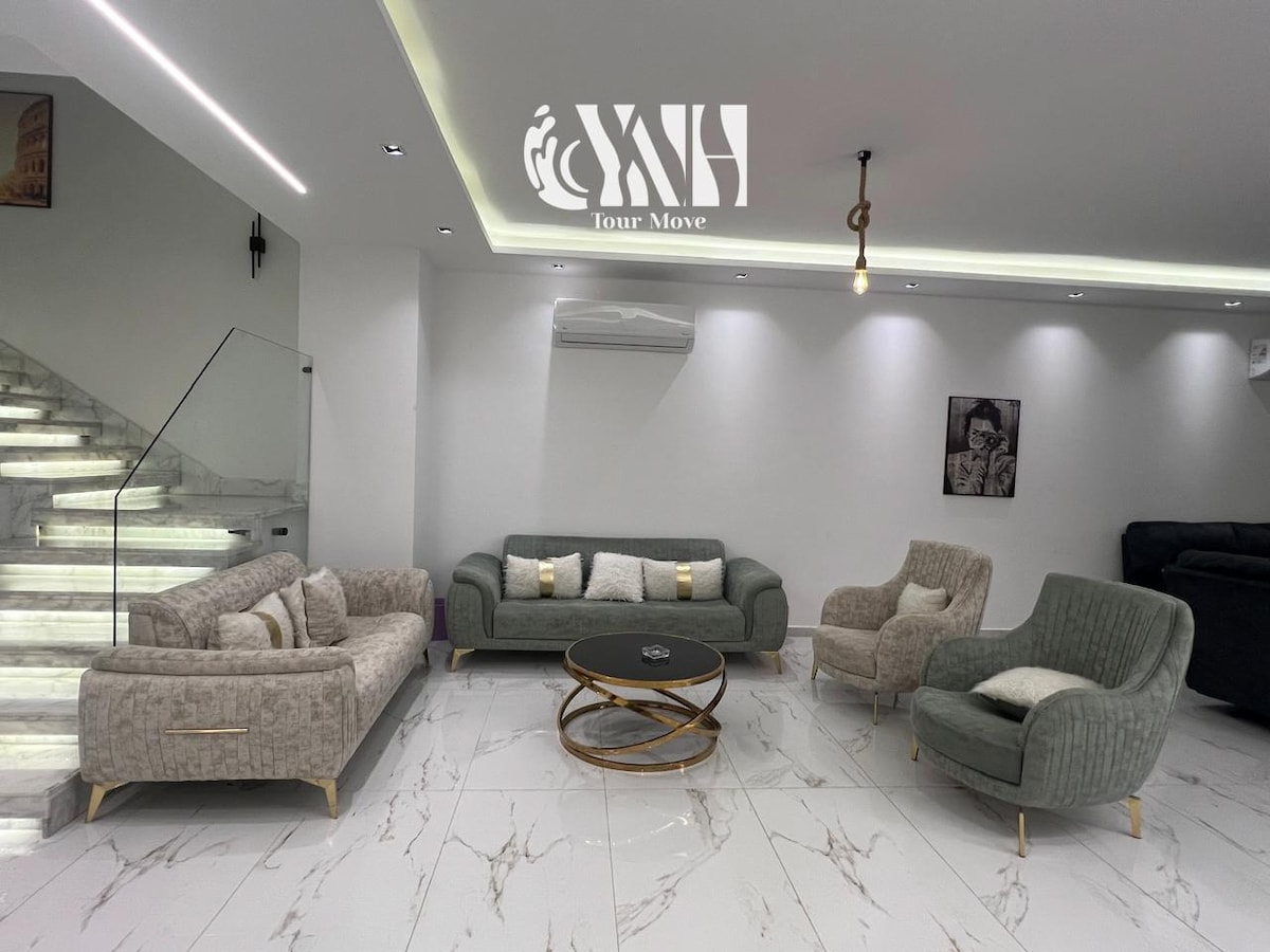 Welcome to the Nubian Villa! Discover a serene escape at this beautifully designed lakeside retreat, just 30 minutes from Alexandria and 10 minutes from the International Borg Alarab airport. Nestled on the tranquil shores of Lake Marriott, the Nubian Villa offers an unparalleled blend of peace, comfort, and natural beauty—perfect for a relaxing getaway.