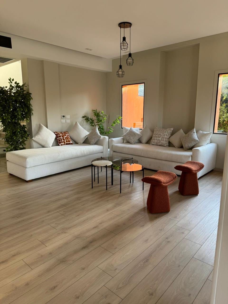 Modern & Stylish spacious villa + nice Sunny Garden house in Golf Al Solaimaniyah 15 minutes far from Sphinx international airport. The Villa is surrounded by over 800 m2 private garden, 10*5 pool and woodland, guaranteeing privacy and peace. Stroll the formal gardens, relax by the pool or spend the day at the great new Grand Egyptian Museum and Giza Pyramids are just 25 minutes away. The villa is well-connected, with satellite TV/ SMART TV, and Wi-Fi access.