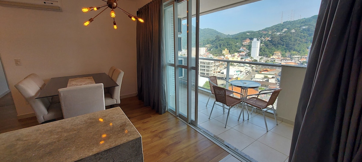 Lounge Apartment, located 5 minutes from Brava Beach and 10 minutes from Balneário Camboriú. The location is perfect. Only 5 blocks from Beach. Close all parties and restaurants. Condo with complete infra, Pool, Gym, Steam and 5 Barbecues. The apartment has Mountain-facing Jacuzzi with hydro and chromotherapy. Ideal for relaxing or take a romantic time. It has 58 'smart TV in the living room and 40' in the bedroom. Full kitchen. Machine washes and dries. You will love this place.