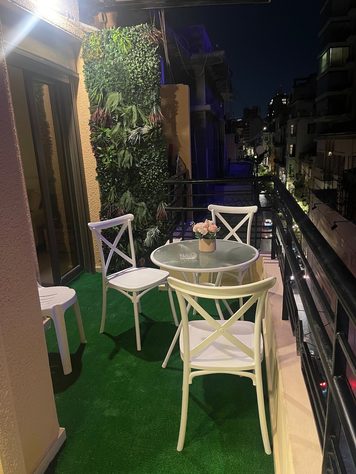 Want to enjoy a stylish experience at this centrally-located place? Want to listen to the splashing of the outdoor fountain and relax on the huge terrace ? want to experience the big indoor jacuzzi in the stylish wintergarden? This apartment can welcome up to 4 guests. It is fully equipped and decorated with unique art pieces. It has 24 h electricity through a battery operated system. It is located in the heart of Beirut, with many restaurants, pubs, shops, malls, cinemas in the neighborhood.