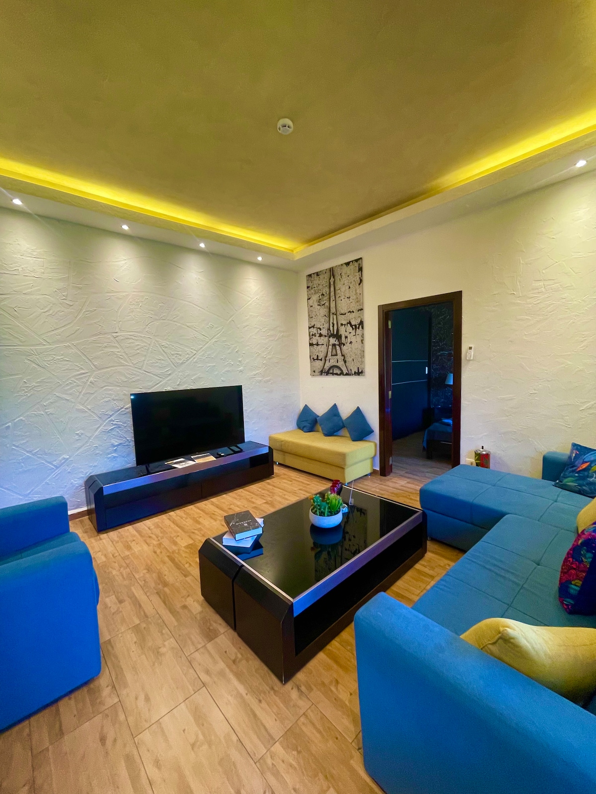 Enjoy a stylish experience at this centrally-located place. outside you’ll find all the essentials: popular coffee spots like Starbucks, major supermarkets; banks, pharmacies, and money exchange counters (Whish, OMT) — all just steps away. Embassy 2 building — a local landmark Inside: • A modern bathroom • A cozy kitchenette and bar • A bright living space with a smart TV • A stylish bedroom with double bed and a chill-out lounge chair — also Smart TV - Self check in - Indoor parking