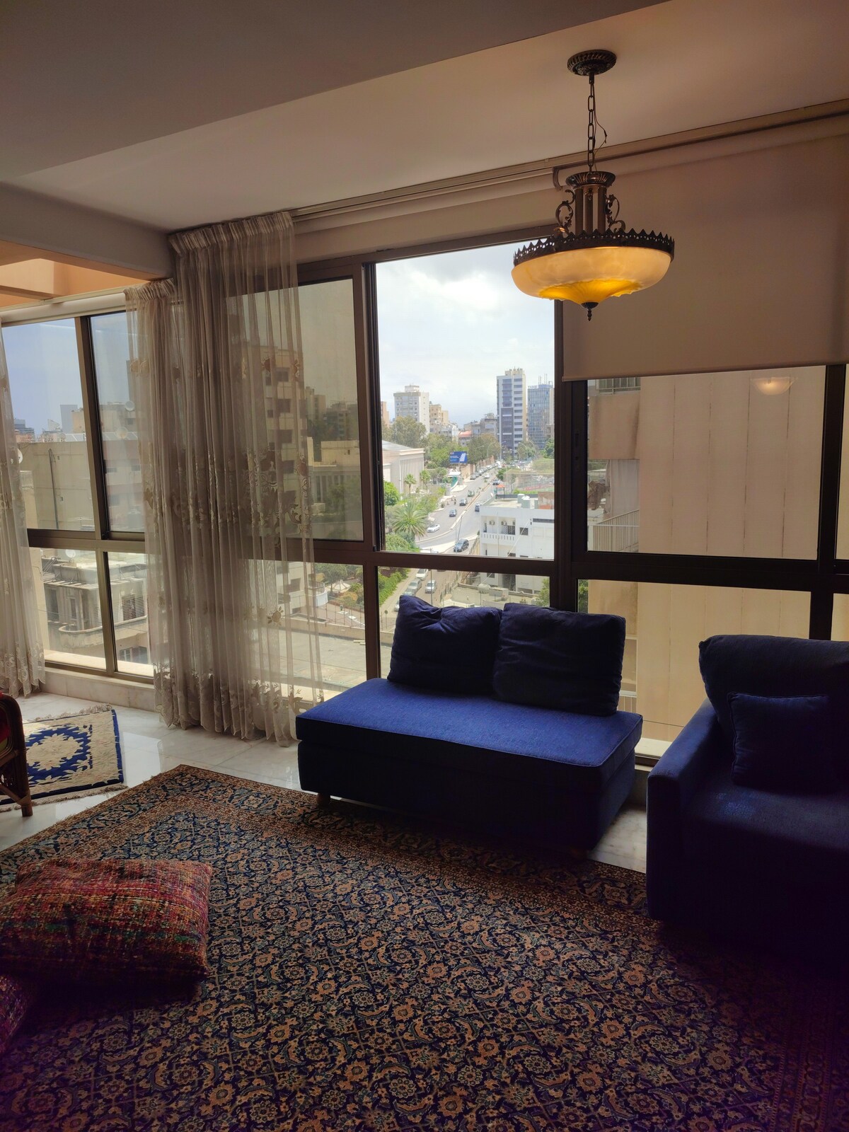 Welcome to our 9th-10th floor duplex in Beirut's central Verdun district "No need to Worry the elevator is on batteries so it operates 24/7" The apartment is on a 15 Amp generator subscription + we have solar power/lithium battery so the house also operates on 24/7 Electricity All the AC’s in the sleeping rooms are brand new double inverter Technology Verdun Street 1 min walk Hamra Street 10 min walk American University of Beirut 15 min walk Beirut (BEY-Rafic Hariri Intl.) 15 min drive