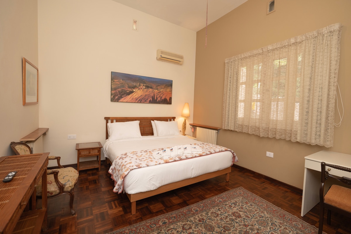 Our guesthouse is a unique, private, peaceful, panoramic espcape located in the middle of the mountaineous nature of Mount Lebanon. Enjoy this peaceful escape and private getaway, neighboured by birds, squirrels and pine trees. The perfect location to enjoy a sunset sky or a starry evening with friends or family. Experience the Old Souk located in the middle of the village, and a cozy evening in the center. Suitable for up to 3 guests! (24hr Electricity and WiFi)