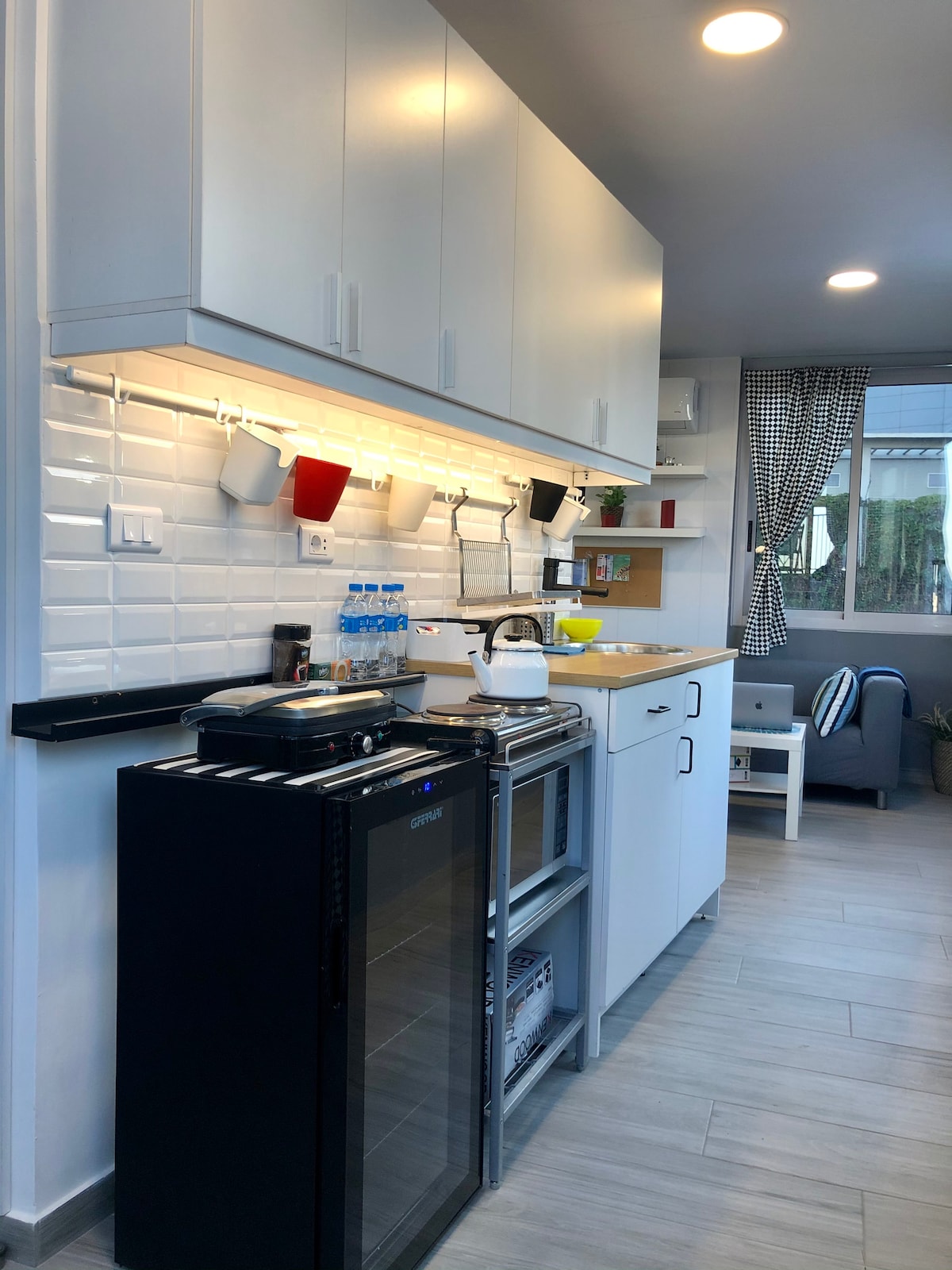 This City Studio designed by Tony Akil is a unique & calm accomodation located in Beirut's beautiful and central neighborhood Badaro. The space is naturally illuminated through its terrace and is charcaterized by the cozy and minimalist style. It offers a fully equiped kitchen, bathroom, living and a double bed on a mezzanine. It is at a walking distance to a variety of places like Beirut's central park and museum, pubs and cafes, pharmacies and schools. 24 hours electricity & air-conditioning.