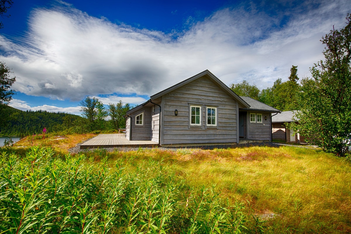 Røyri is a bright and nice cabin in beautiful surroundings right by the water Røyri in Valdres. The cabin was built in 2006, and it has a white wooden roof, walls and floor. Large windows provide lots of light. There are three bedrooms with 6 beds, as well as a single room with a sofa bed for 2. There are two bathrooms, both with shower/WC, as well as a sauna and washing machine. The living room and kitchen are open plan. The kitchen is well equipped
