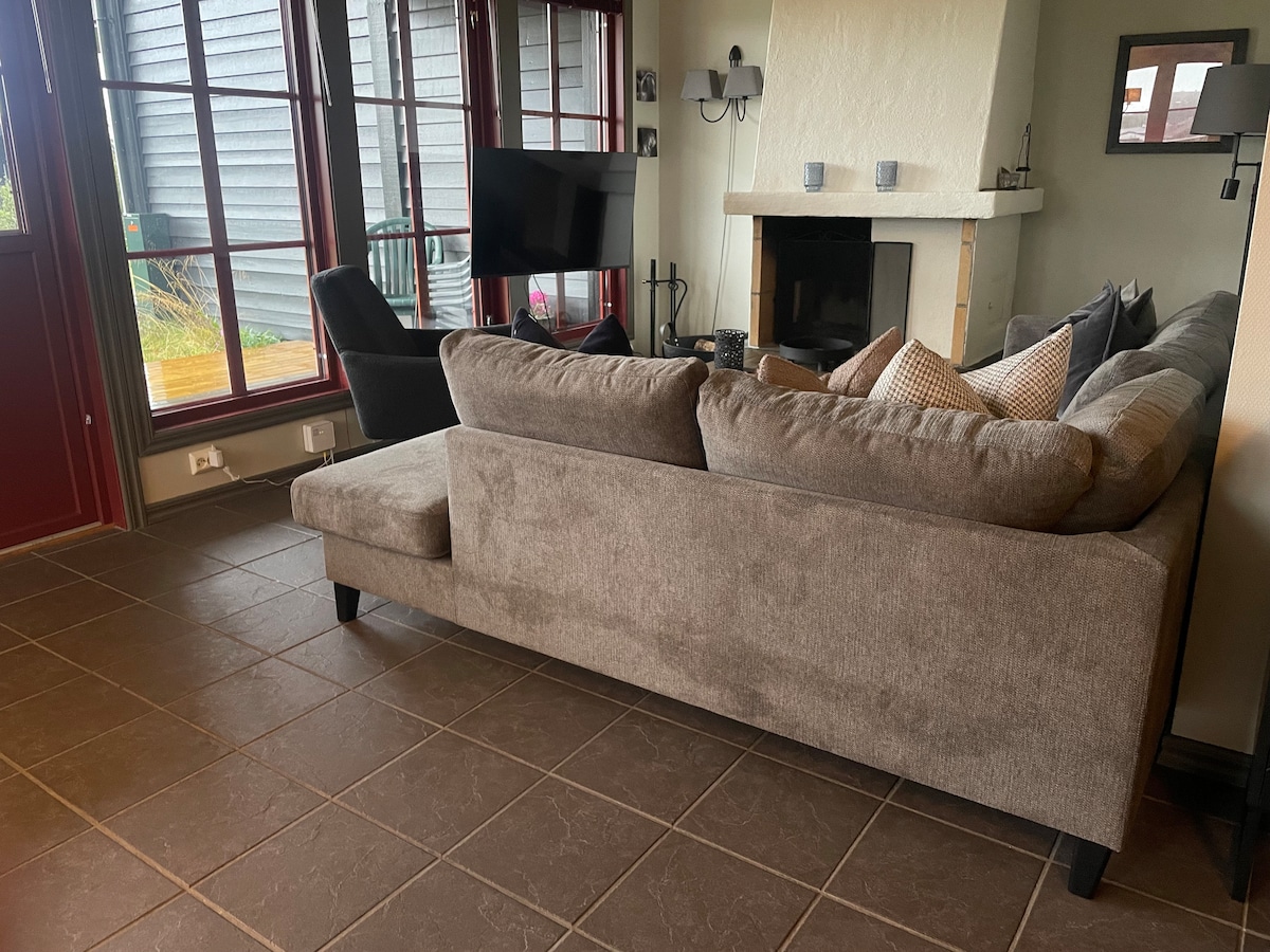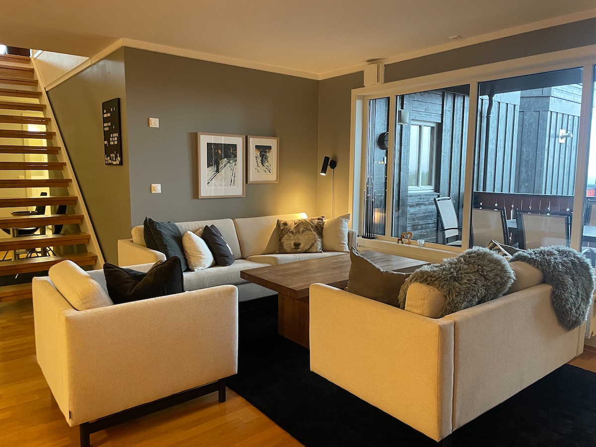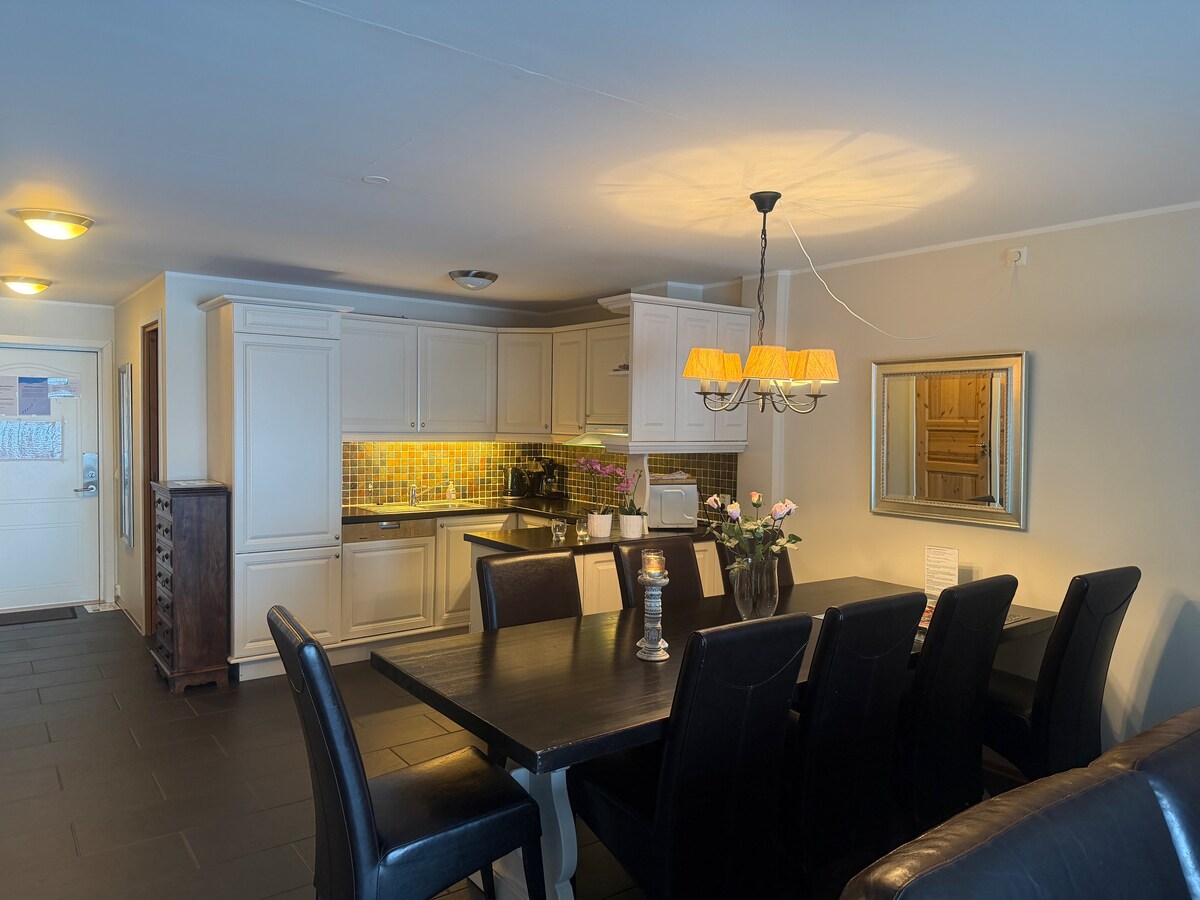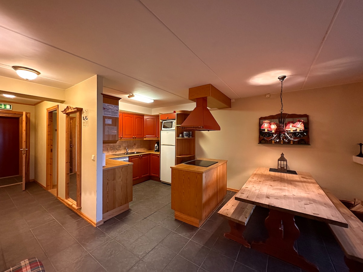Beitotind 1411 is located in the heart of Beitostølen, in a quiet area directly below the Radisson Hotel, close to the ski slope and a short distance to the center with alpine slopes, restaurants and shops. The apartment has 3 bedrooms with a total of 6-7 beds. One bedroom has a double bed, the second a family bunk and the third bedroom has a bunk bed. The living room is invitingly furnished with a cozy fireplace, TV, internet, as well as a dining table and an open kitchen
