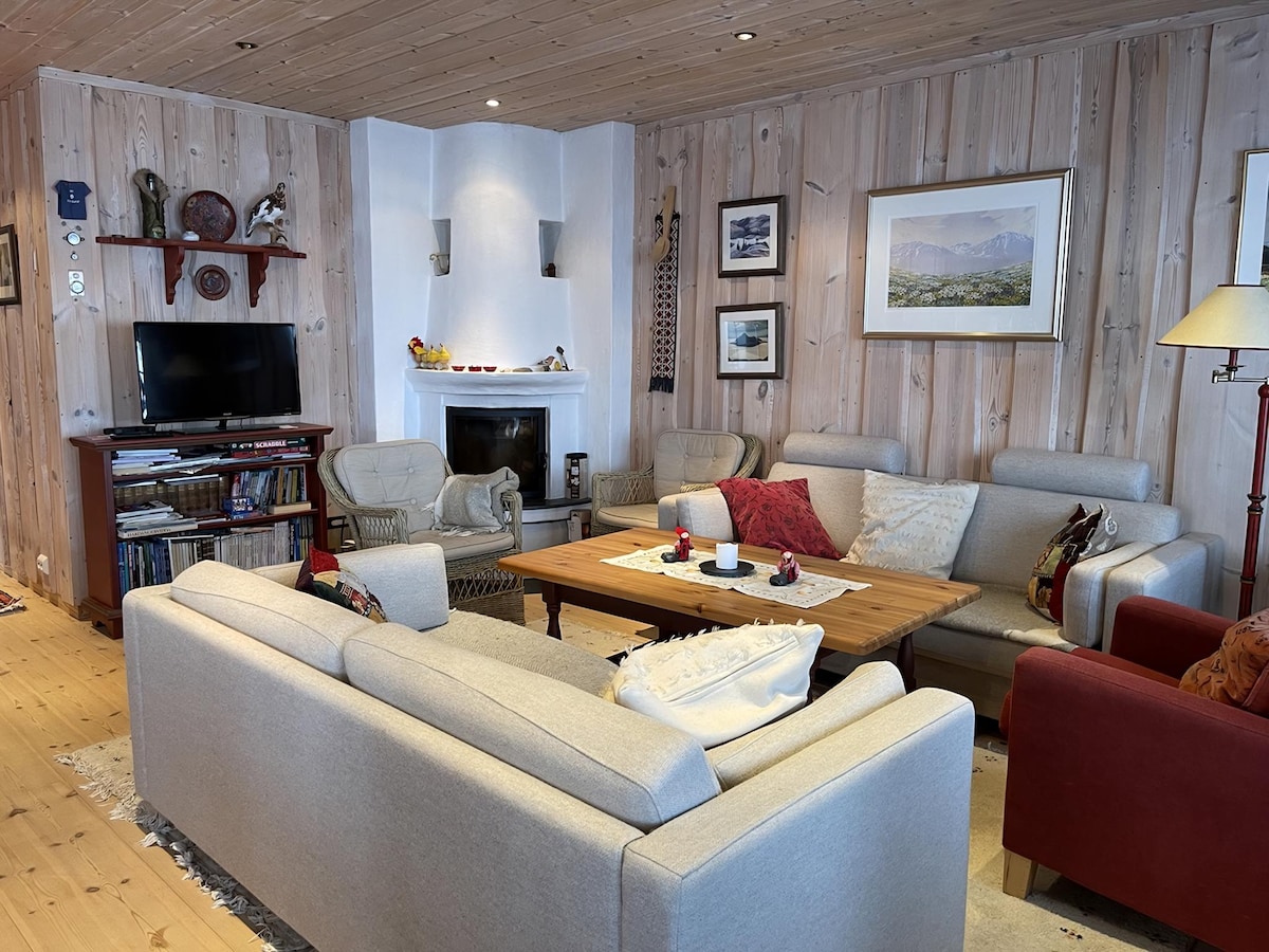 Finntøppvegen 17 is a spacious and cozy cabin in the center of Beitostølen. The cabin is located in close proximity of the cross-country-tracks and the ski lift. Finntøppvegen 17 has 4 bedrooms in total, of which two are downstairs (1 double bed, 1 bunk bed) and 2 upstairs (2 double beds). Downstairs is a laundry room with a washing machine and a dryer, a bathroom with shower and toilet, and a small TV-room with a fireplace. The sofa can also be used as a sleeping space