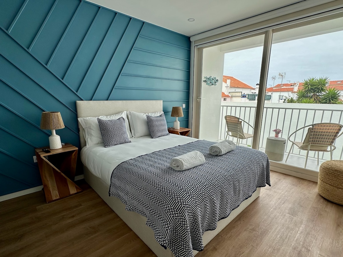 Quarto Duplo com Varanda Tranquilidade e conforto definem esta suite no primeiro piso. A varanda virada para as traseiras da casa garante um ambiente mais reservado e silencioso. Com cama de casal de 150cm e duche integrado no quarto, oferece uma experiência contemporânea e acolhedora. A casa de banho privada assegura total comodidade. Inclui ainda ar condicionado, televisão, minibar, máquina de café, roupeiro e amenities de qualidade. Perfeita para quem procura descanso e privacidade.