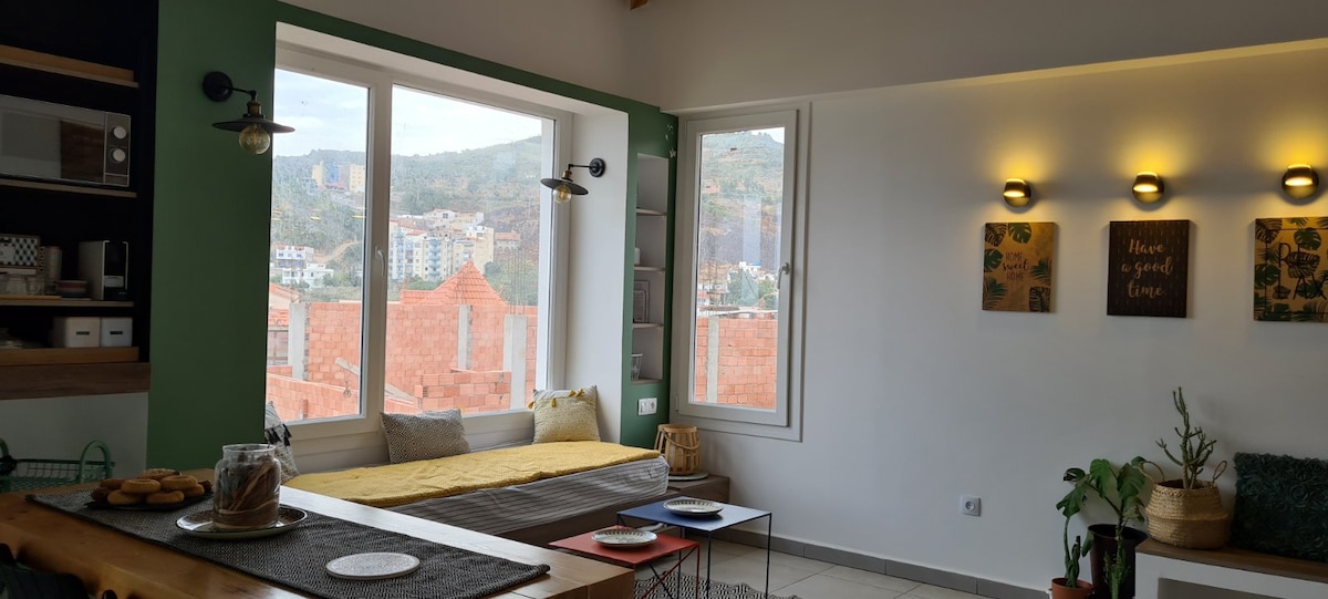 Mon logement est situé au centre ville de Bejaia dans une résidence sécurisée avec ascenseur et toutes les commodités y compris le wifi pour un bon séjour et près des arrêts des bus pour toutes les destinations, stade, salle se spectacle, restaurants, parc de loisirs, l'endroit est paisible pour un bon séjour, la vue est dégagé avec vue sur le mont de Gouraya.