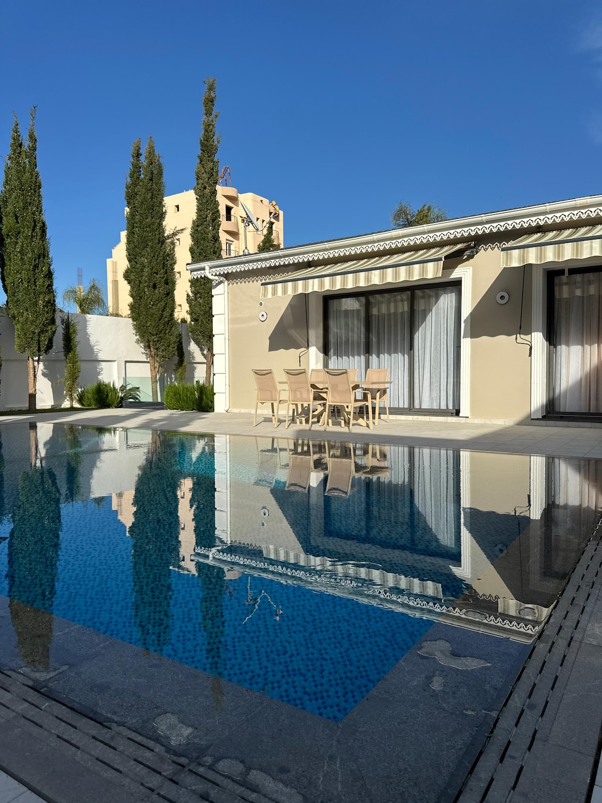 Villa Blanche – Luxe en Kabylie, accès direct plage & vue mer Découvrez la Villa Blanche, à Tichy, petit village balnéaire typique de la Kabylie, une somptueuse propriété de style californien offre un accès direct à la plage et une vue spectaculaire sur la Méditerranée. • 7 suites climatisées, chacune avec salle de bains privative, toilettes et rangements intégrés je suis pas responsable en cas de dégradation de la piscine pondant votre séjour (pluie, vent de sable, poussière mal utilisation)
