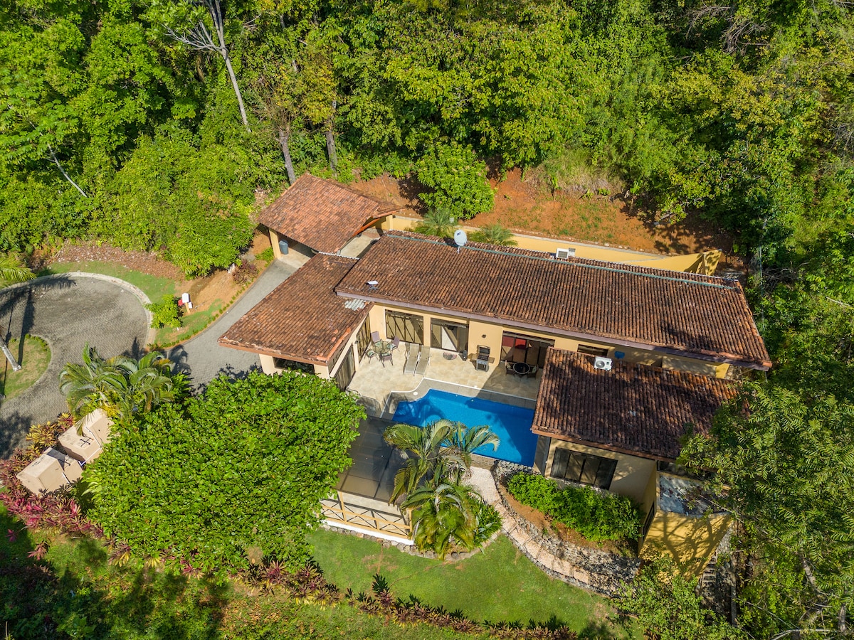 Unique Balinese inspired treehouse overlooking a seasonal river, butterfly garden and tropical fruit orchard. Built with locally sourced lumber that was mostly milled on the property and complemented with keepsakes and carved wooden accents collected while exploring Indonesia and Thailand. This is a birder’s paradise with daily visits of scarlet macaws, parrots and toucans. Located a short drive from world class surfing , oceanfront restaurants and nightlife in playa Hermosa and playa Jaco.
