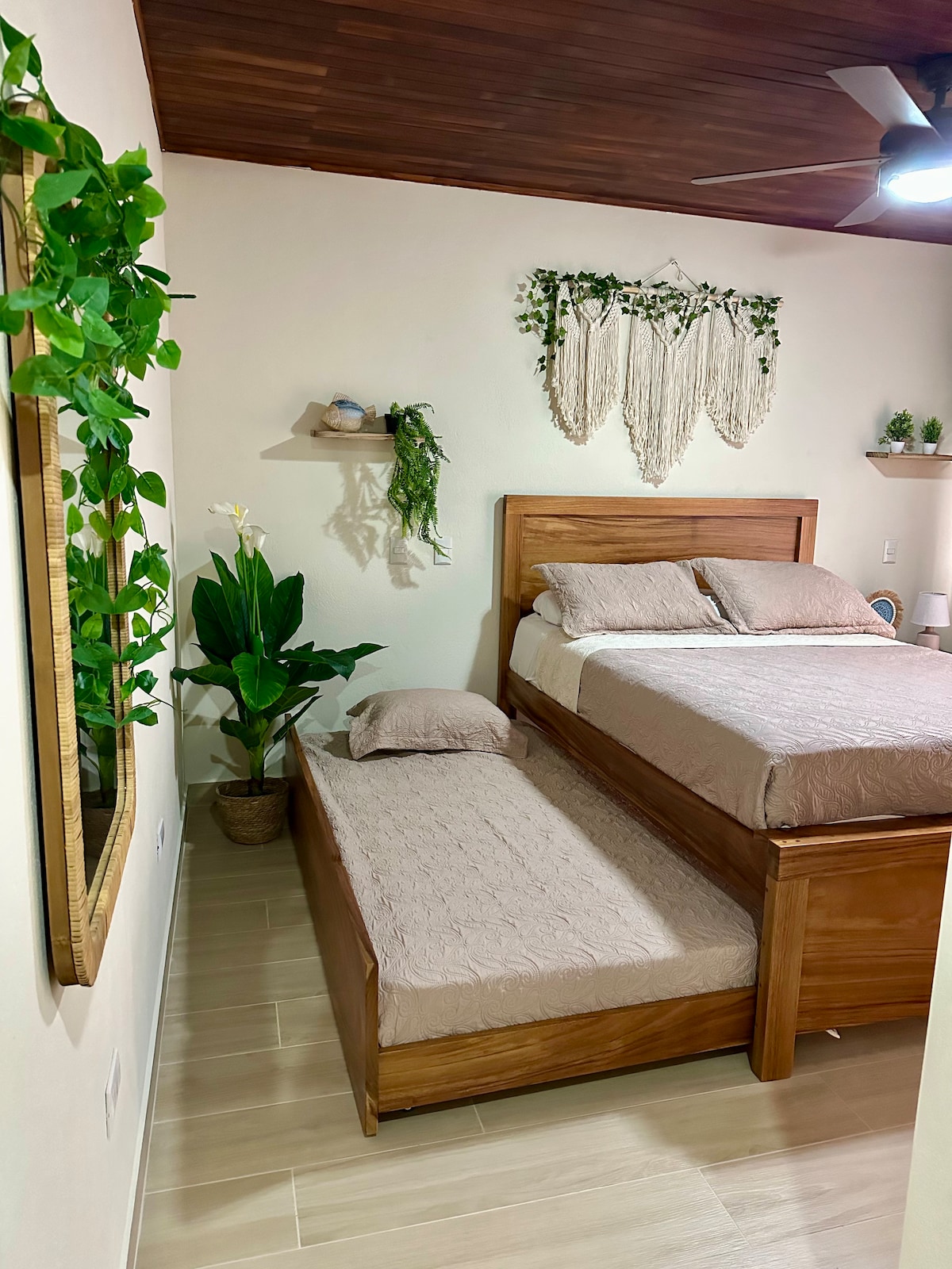 Studio Pura Vida by panoramaplaces is a tropical-style retreat steps from the ocean in Playa Bejuco, Central Pacific —ideal for couples, families & digital nomads. Wake up surrounded by nature, explore Manuel Antonio National Park, waterfalls, & rainforests trails. Restore your balance in connection with nature & tropical vibes. Sleeps 4, with A/C, Wi-Fi, fully equipped, rooftop terrace w/ BBQ & shared pool, free gated parking nearby. Located on 2nd floor (no elevator). Follow @panoramaplaces